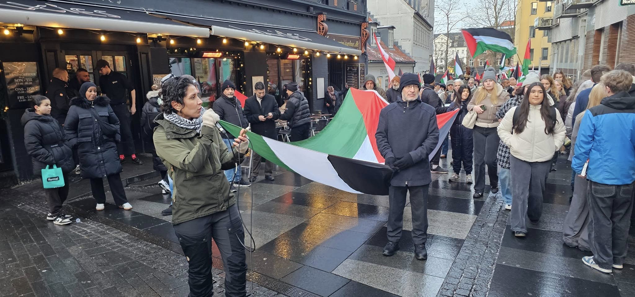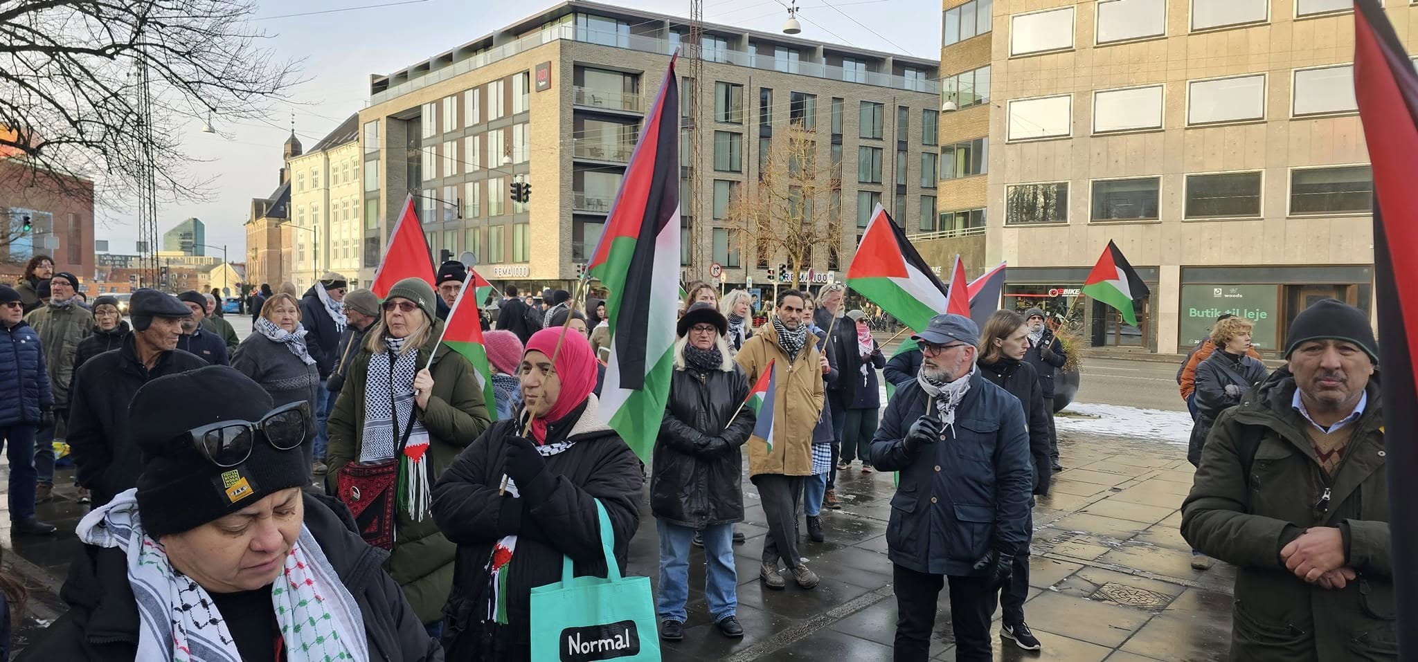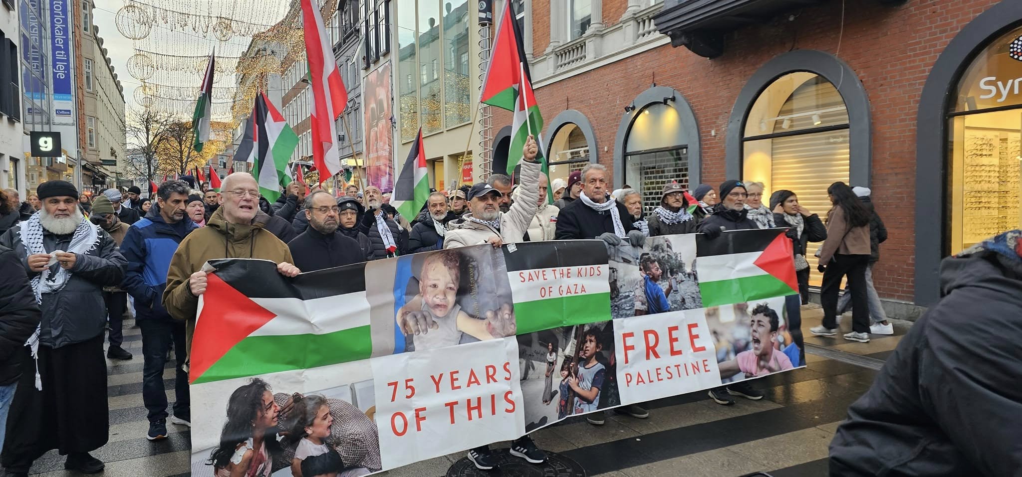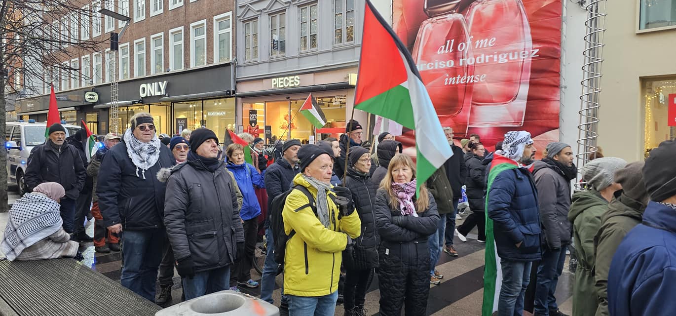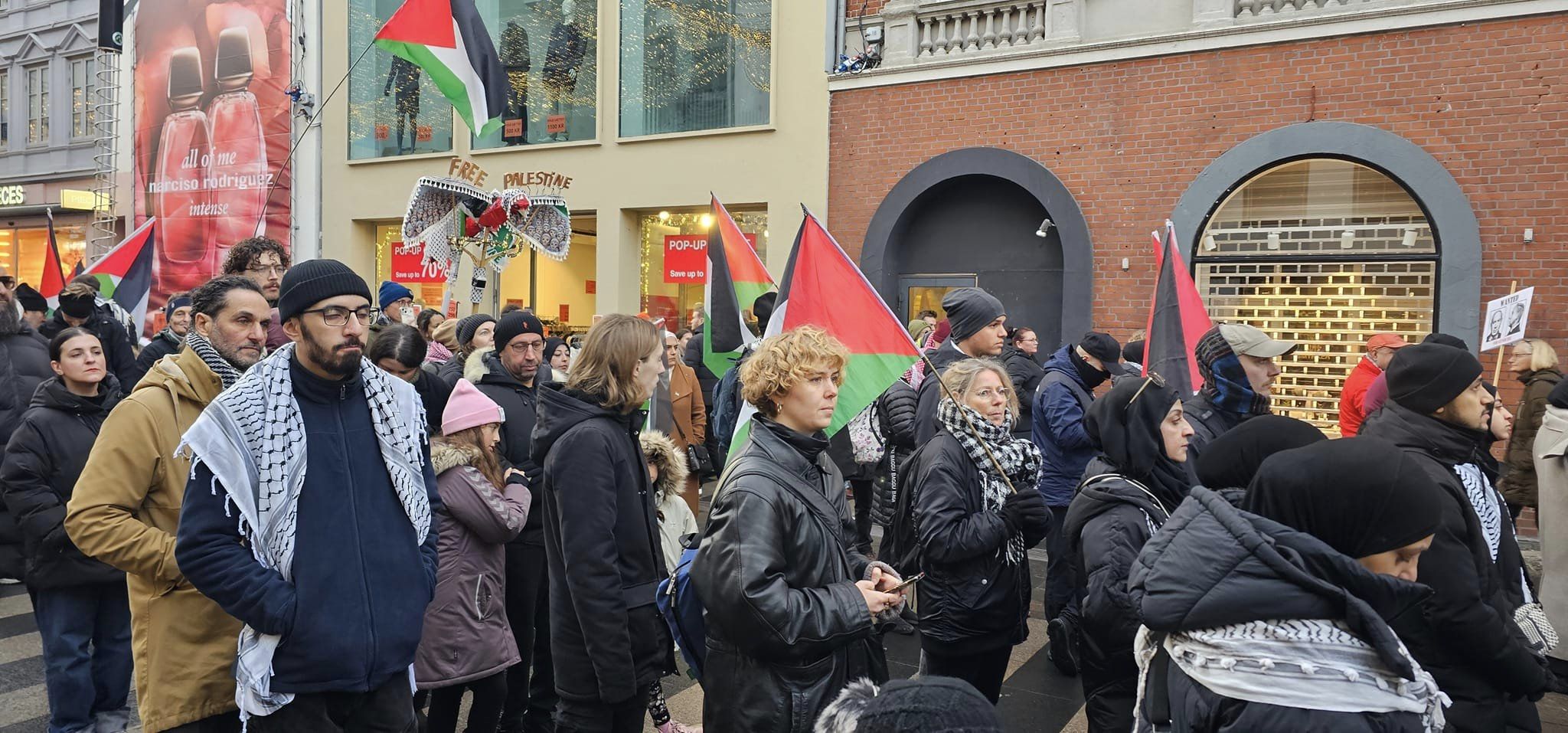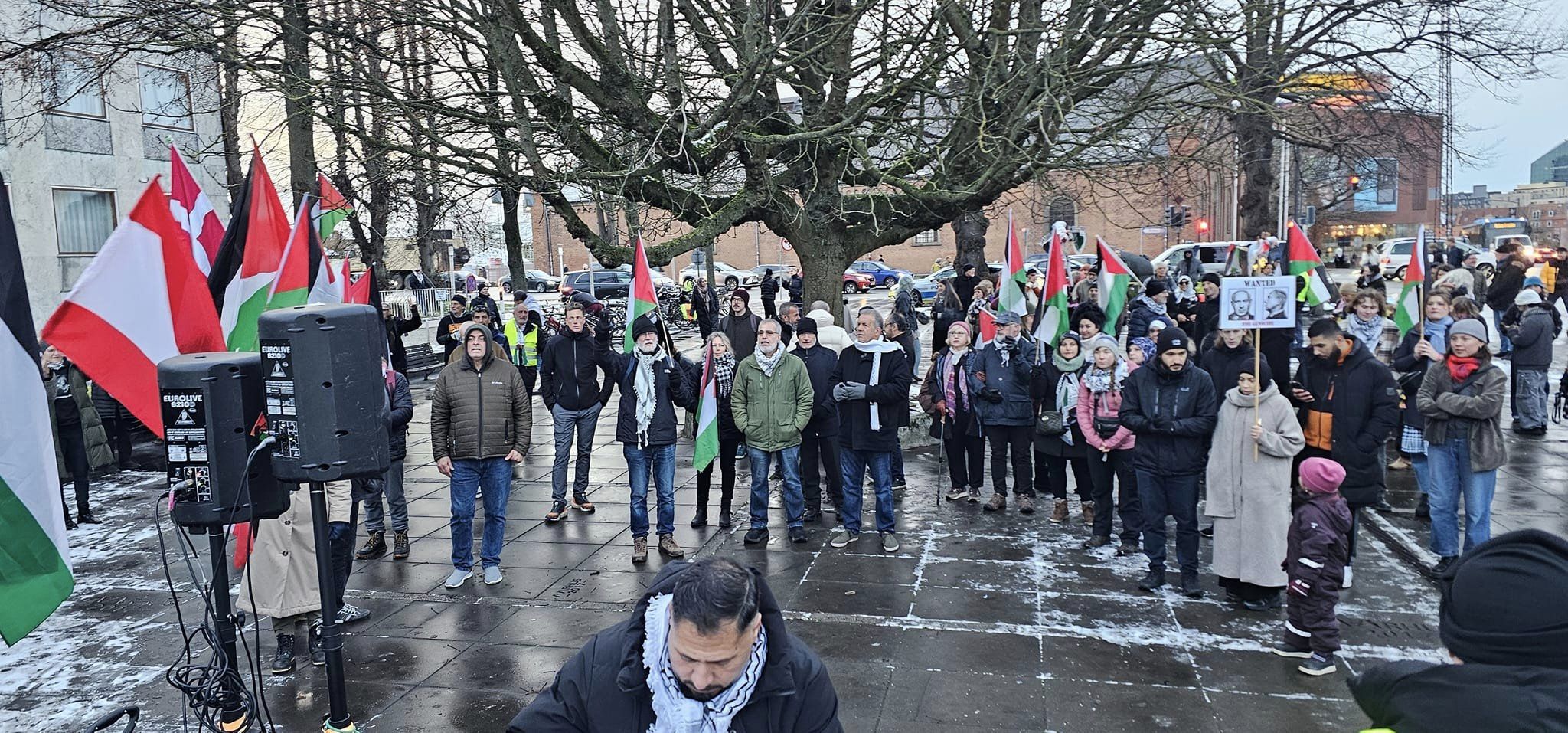 Massive march in solidarity with Gaza and Lebanon in a very cold weather of Aarhus, Denmark
