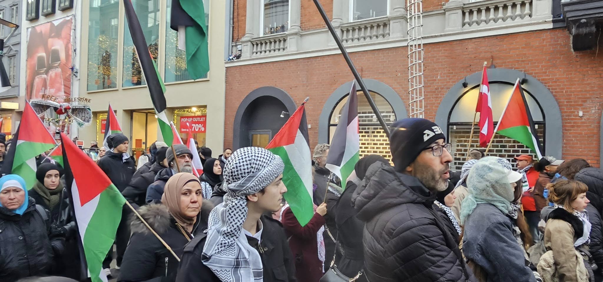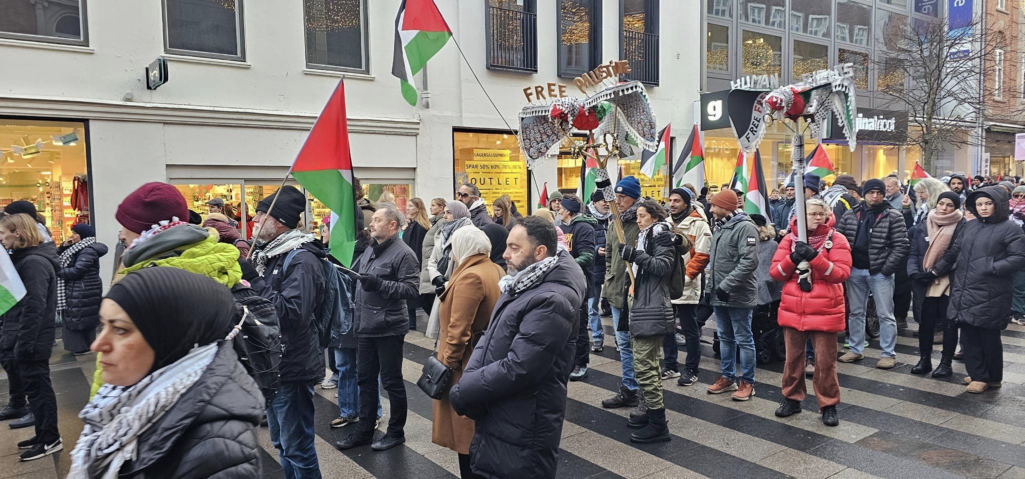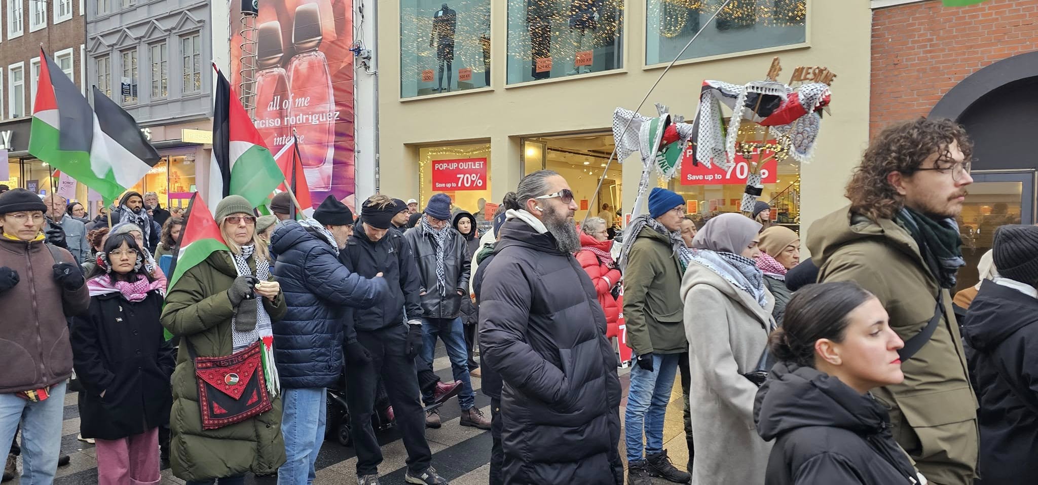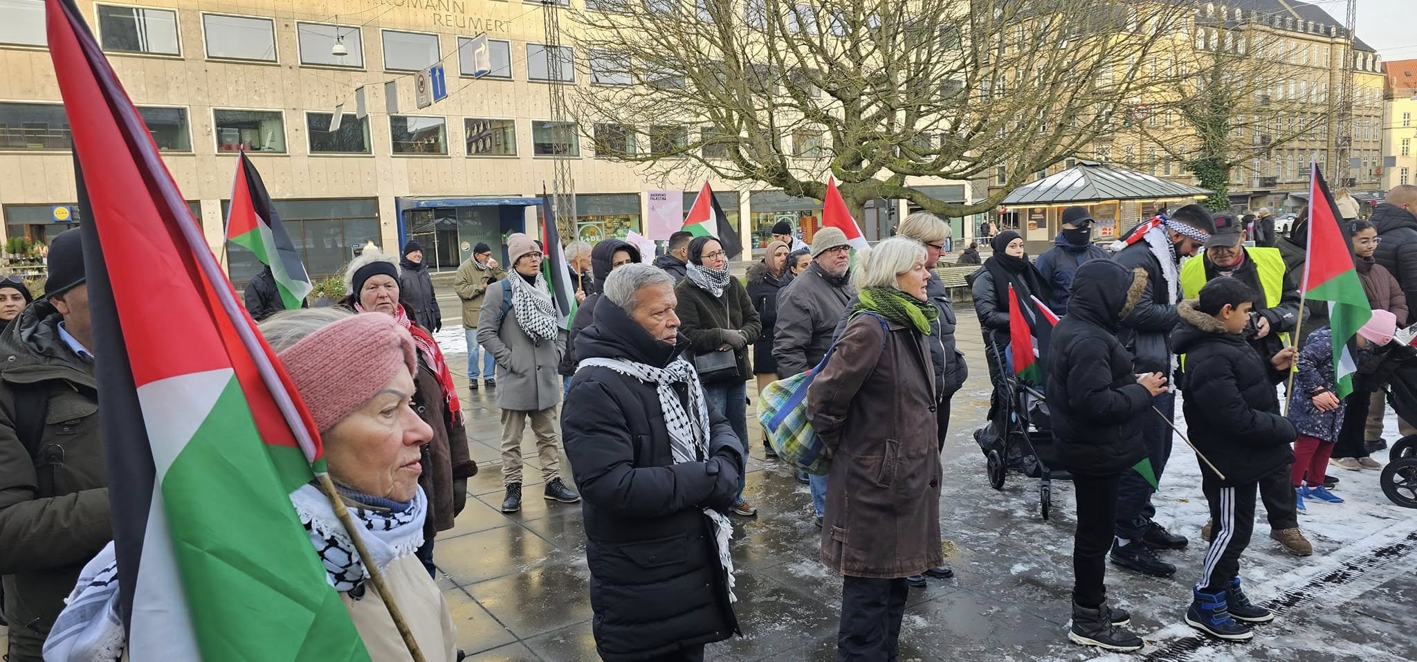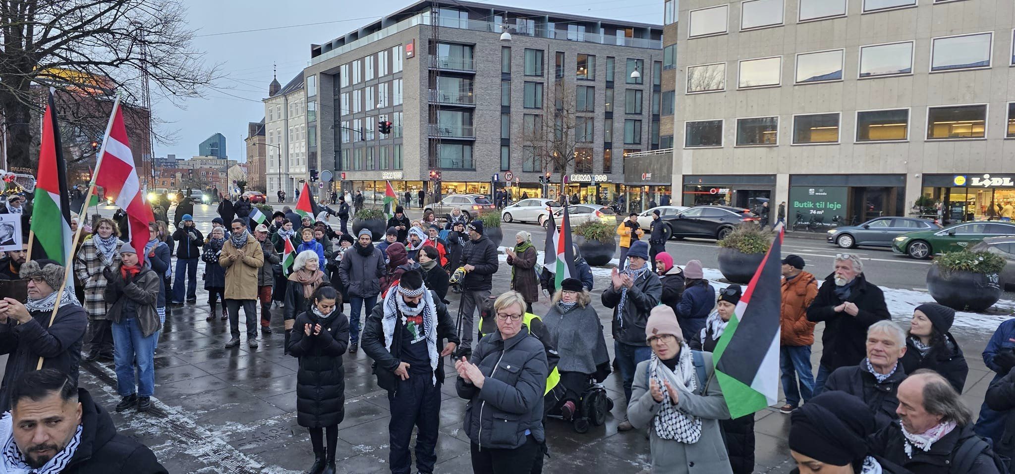 Massive march in solidarity with Gaza and Lebanon in a very cold weather of Aarhus, Denmark