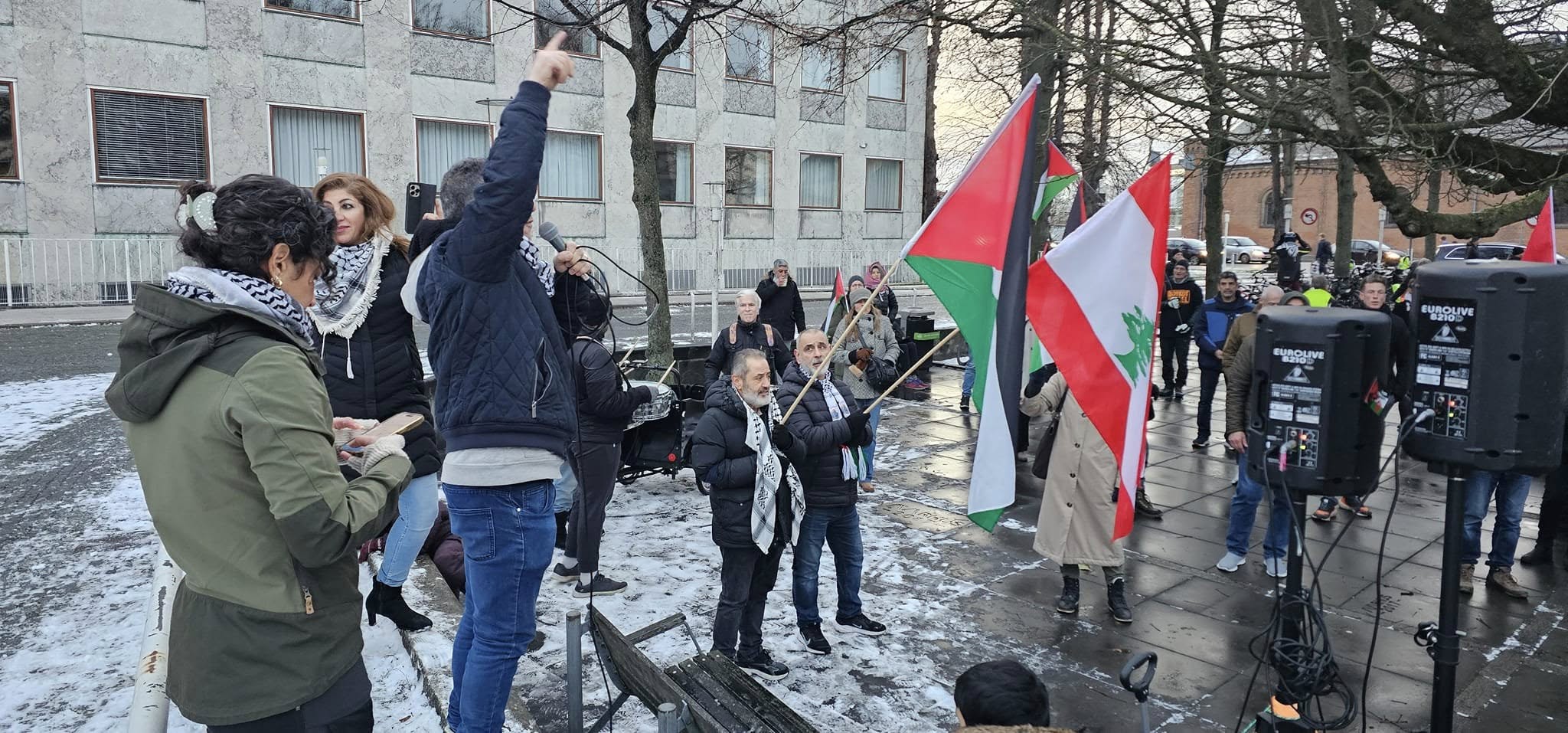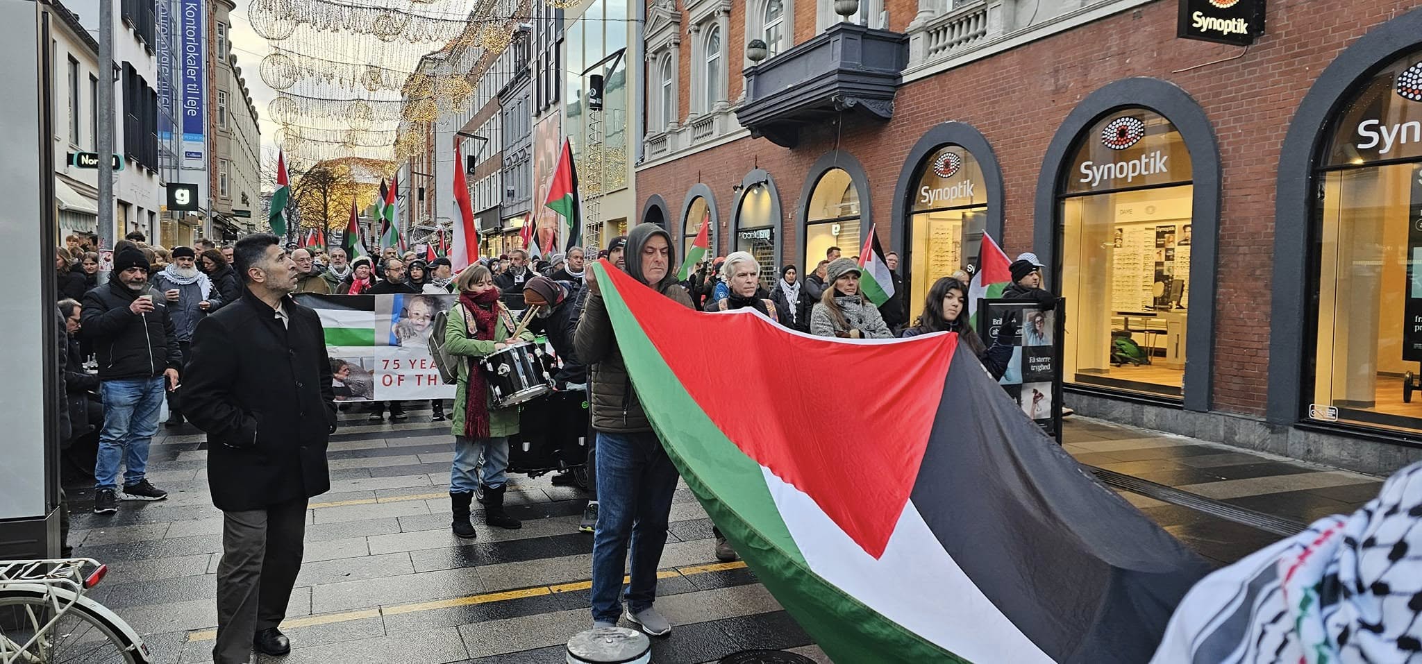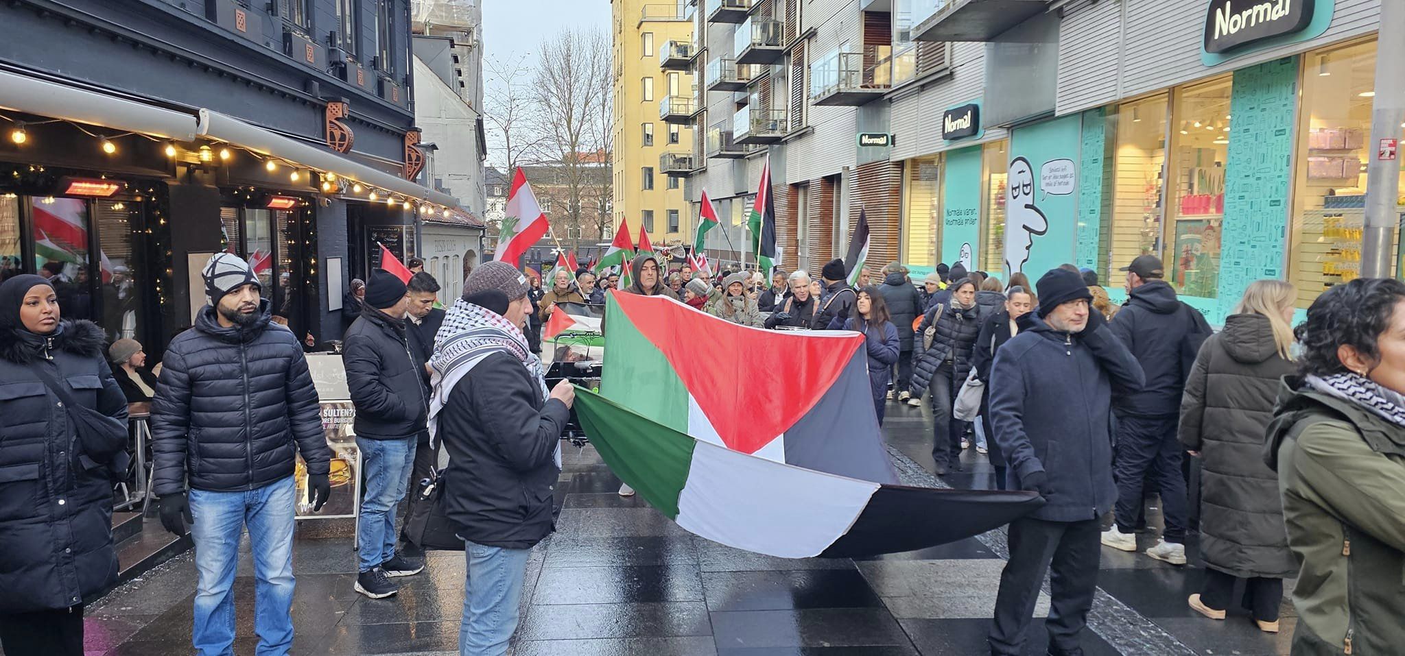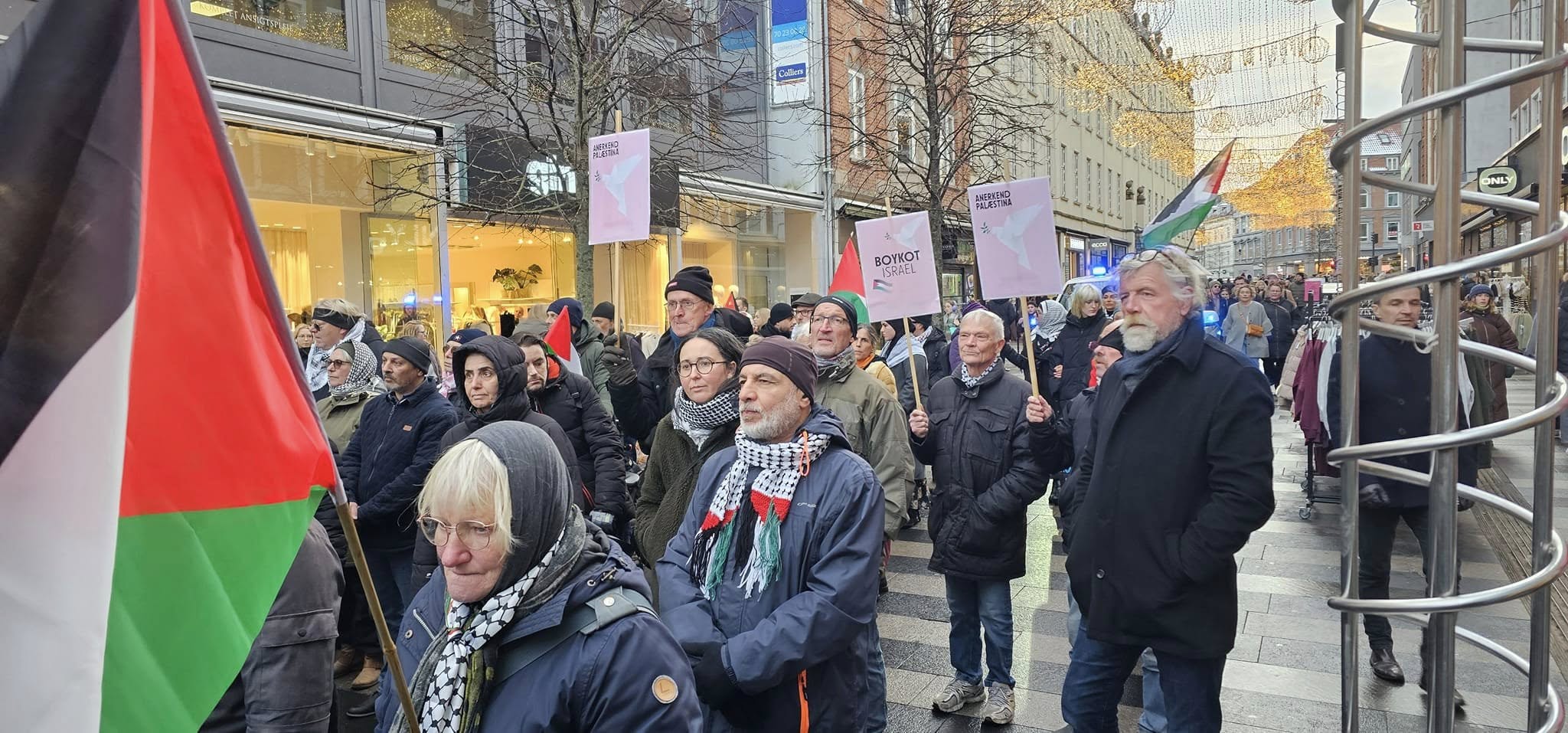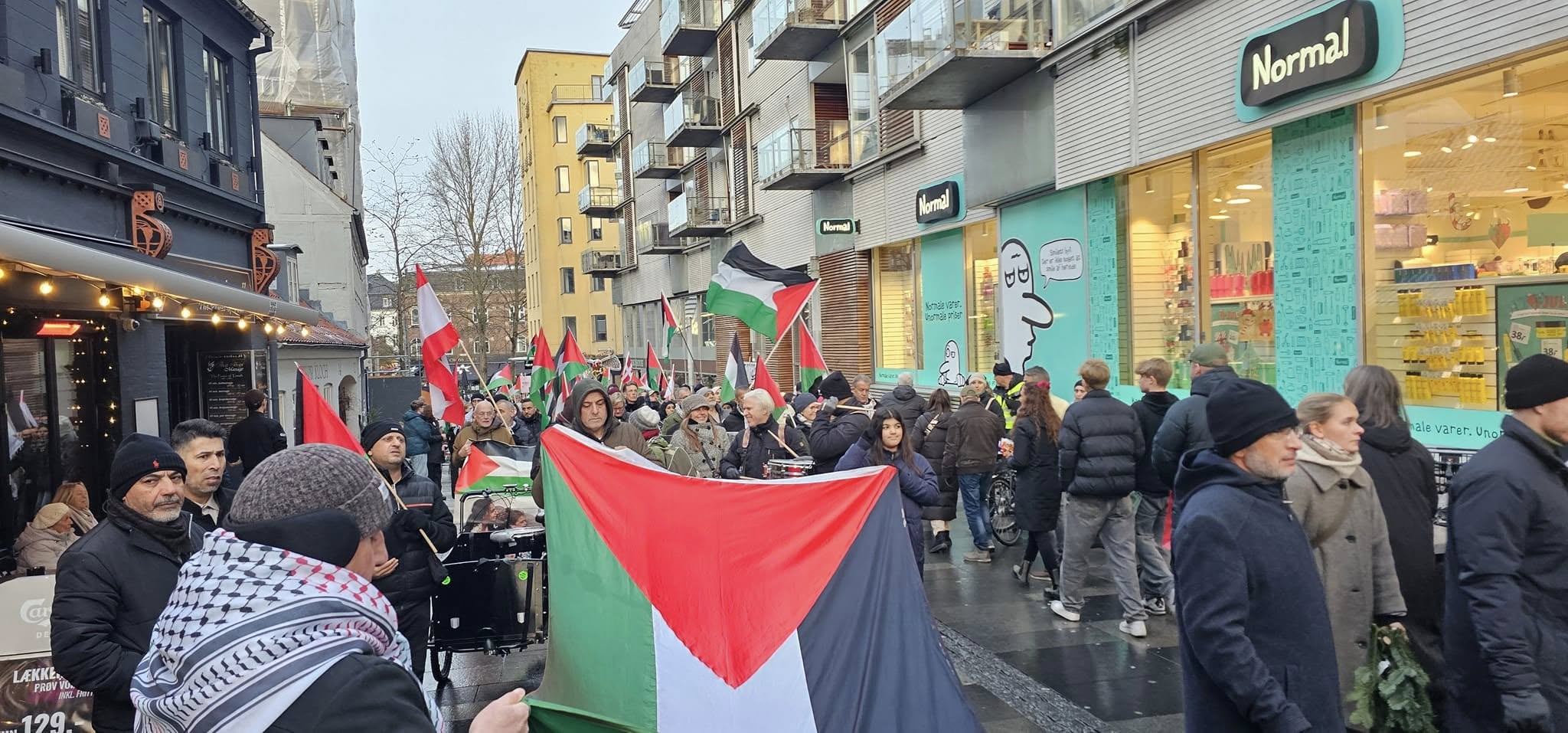Massive march in solidarity with Gaza and Lebanon in a very cold weather of Aarhus, Denmark