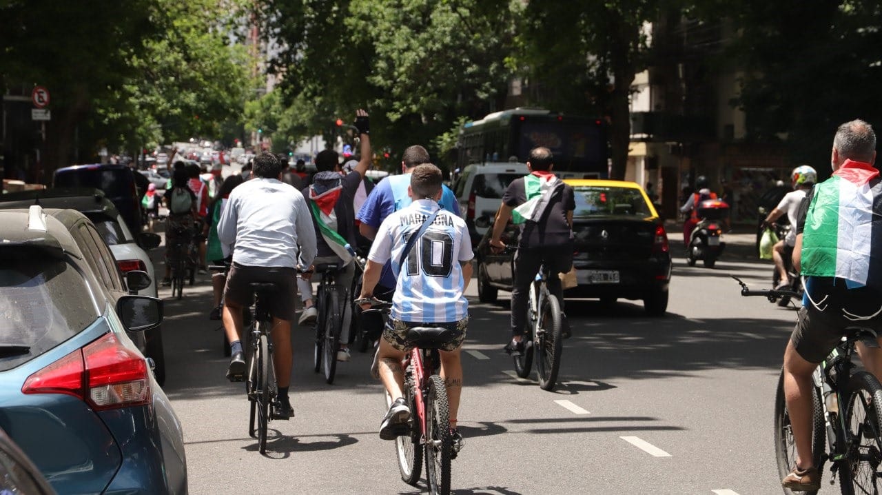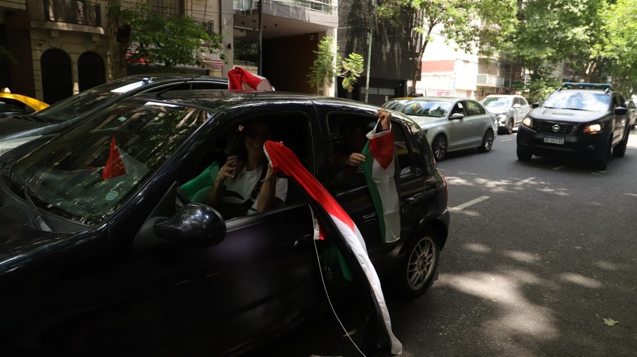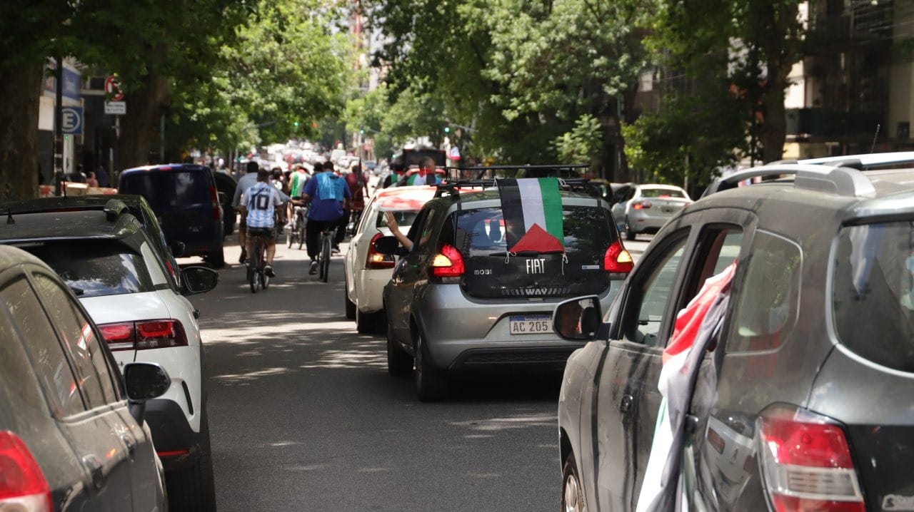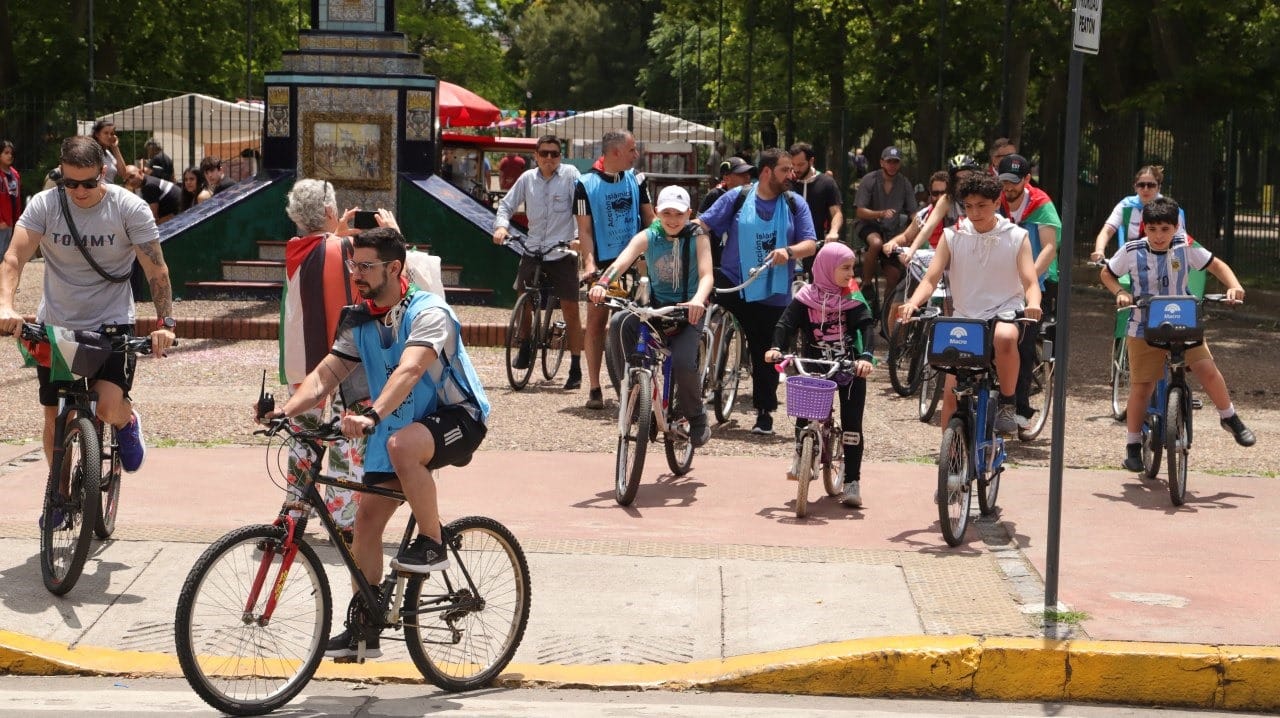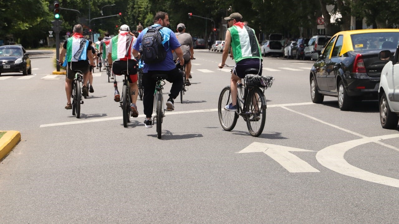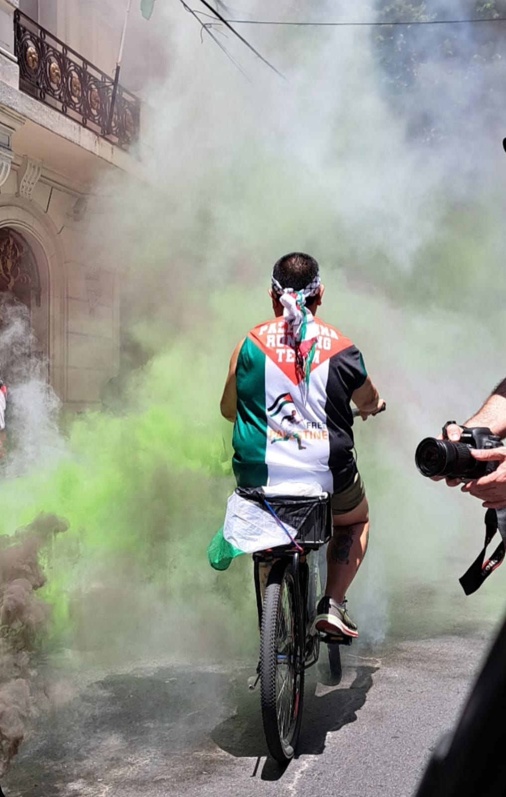 Cycling in solidarity with the Palestinian people in Buenos Aires, Argentina