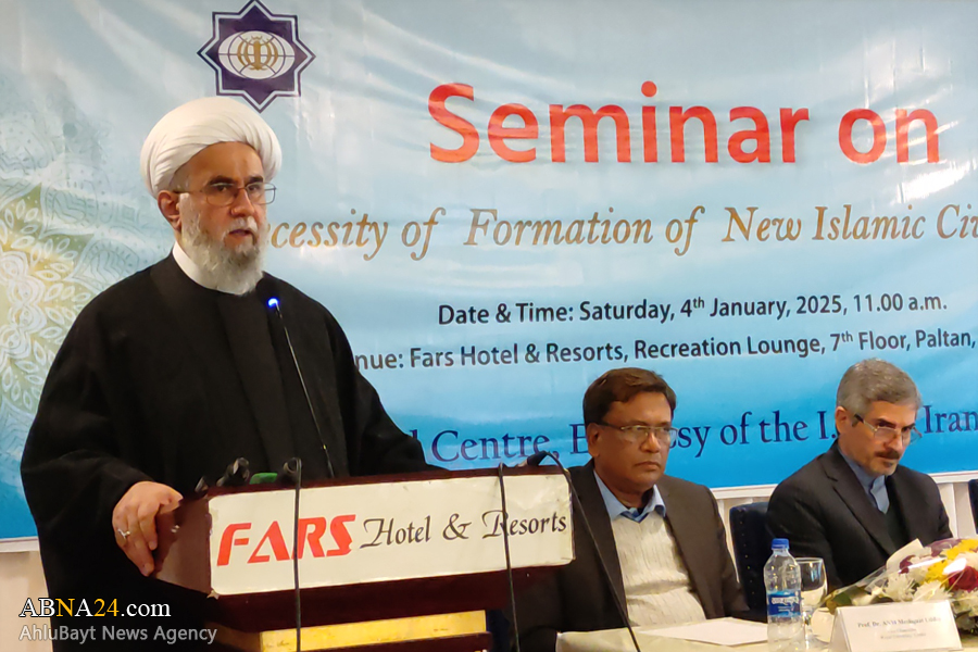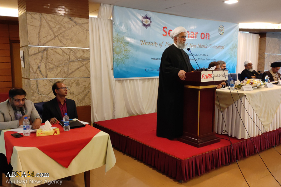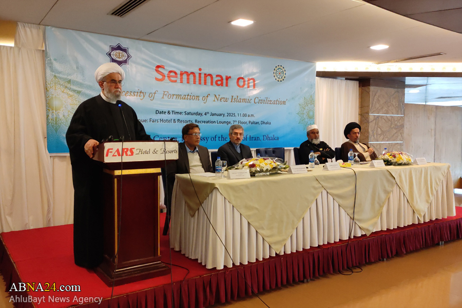 AhlulBayt News Agency (ABNA): The "New Islamic Civilization" conference was held on Saturday, January 4, 2025, in the presence of Ayatollah Reza Ramazani, Secretary General of the AhlulBayt (a.s.) World Assembly, at the Fars Hotel in Dhaka, the capital of Bangladesh.