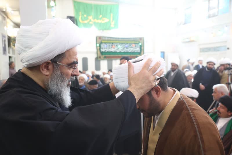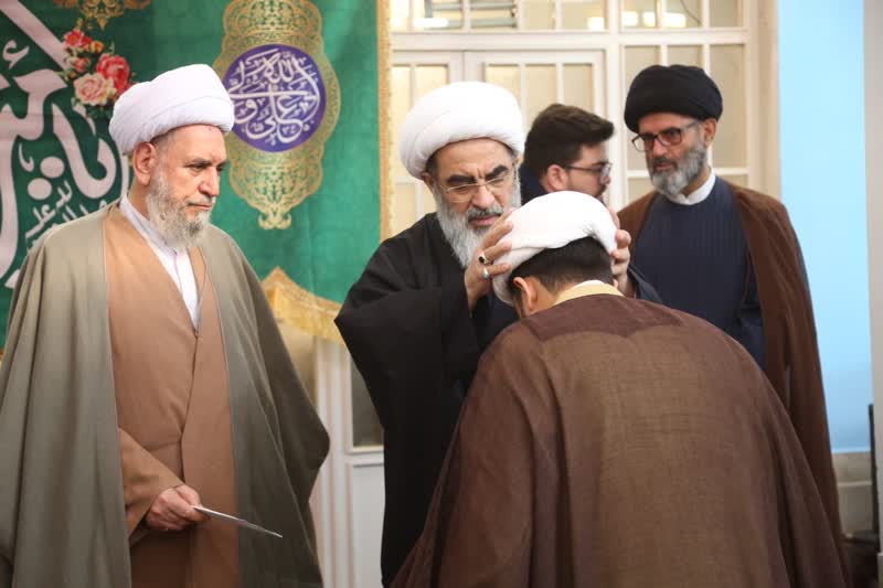 AhlulBayt News Agency (ABNA): On the occasion of the birthday of Hazrat Ali (a.s.), the turban ceremony for seminary clerics was held at office of Ayatollah Fazel Lankarani in Qom.