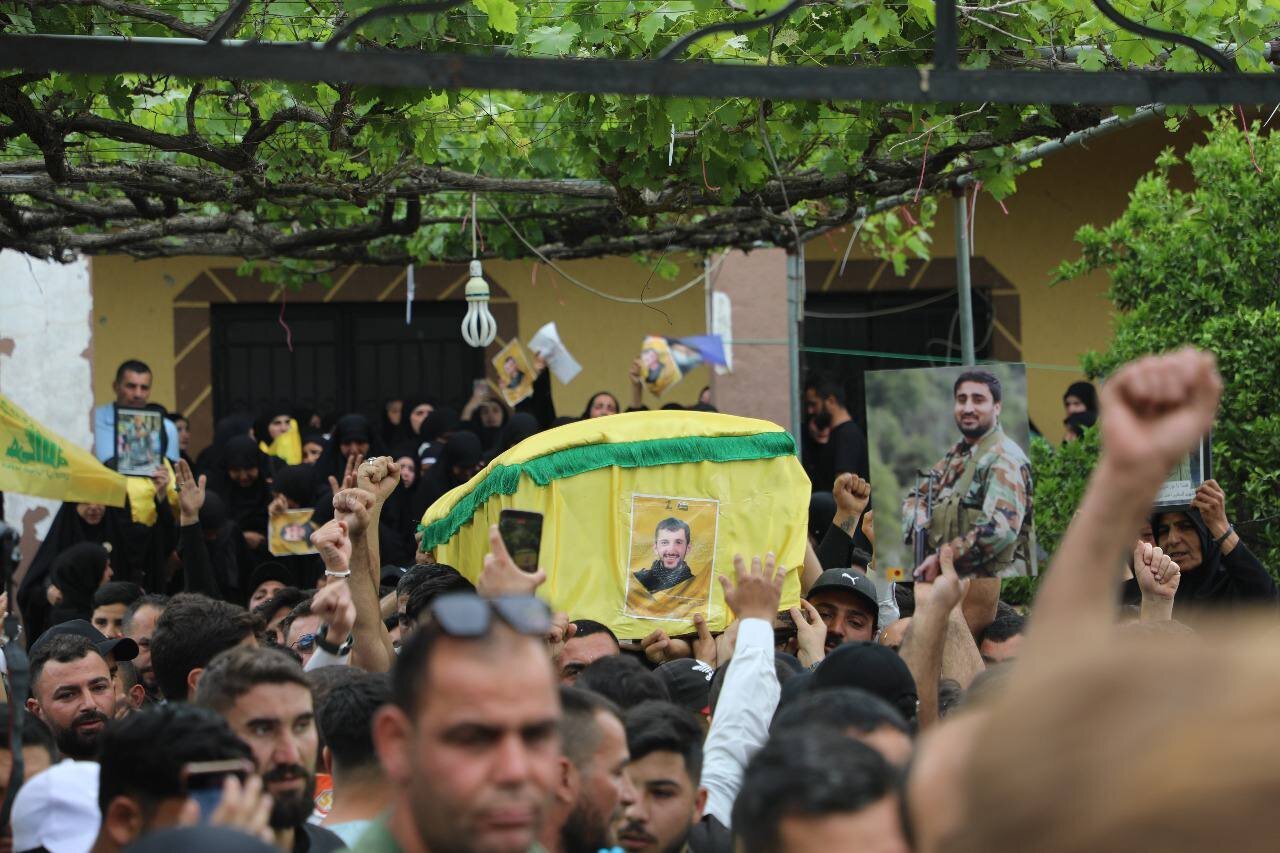 AhlulBayt News Agency: The body of the martyred "Ali Kayed Hashem" nicknamed "Baqir", one of the martyrs of Hezbollah in Lebanon, was buried in the town of "Majdal Zoun" in southern Lebanon. He was martyred in the recent days in a drone attack by the Israeli army on southern Lebanon.