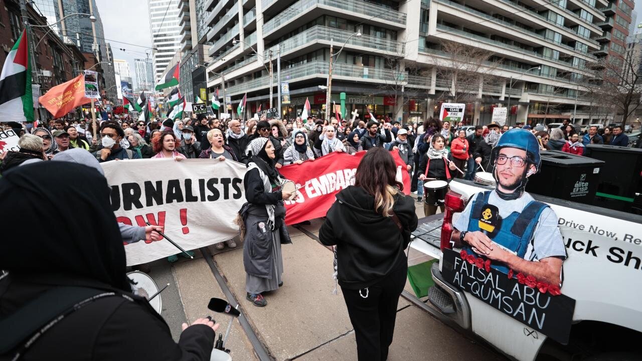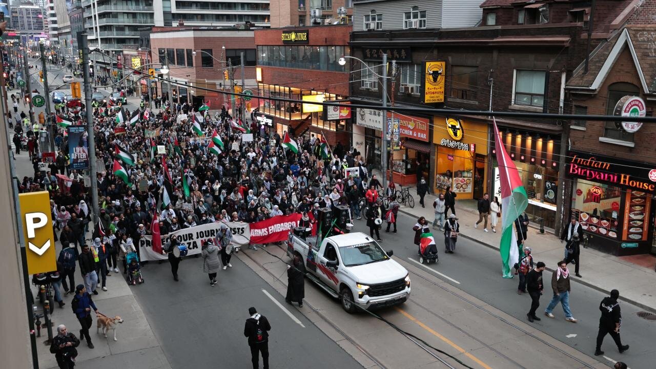 AhlulBayt News Agency: Thousands of demonstrators marched in downtown Toronto, carrying banners and chanting slogans in support of the oppressed people of Palestine.