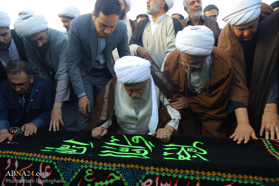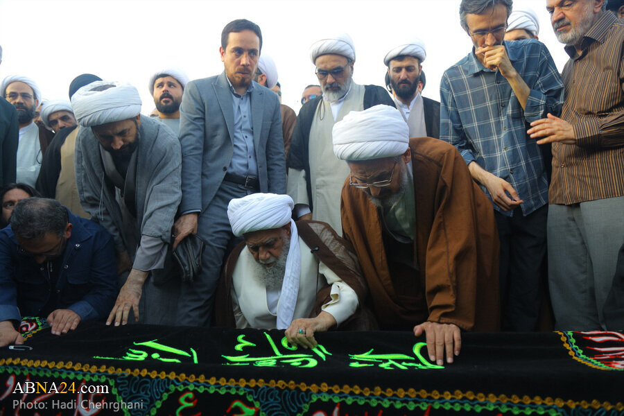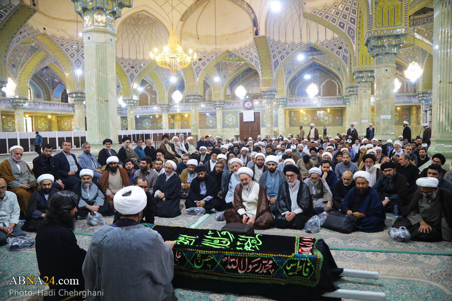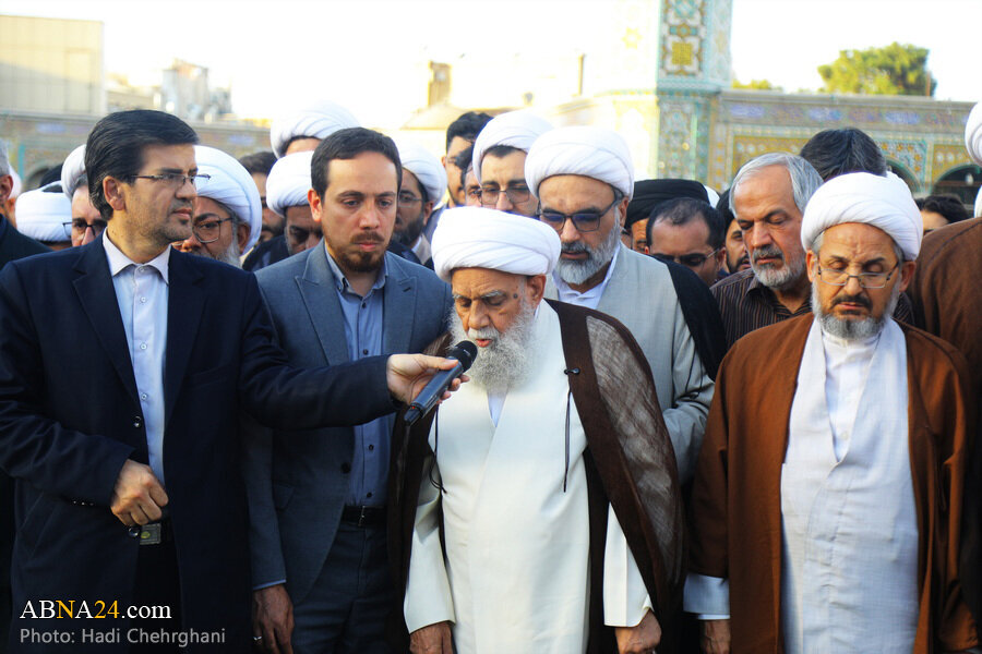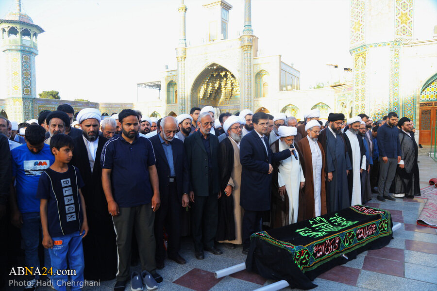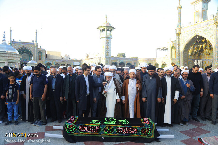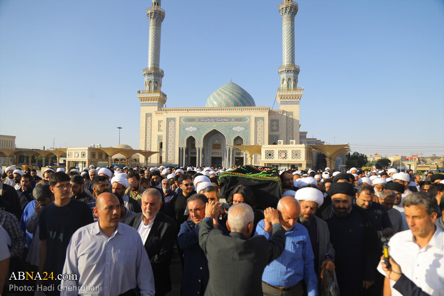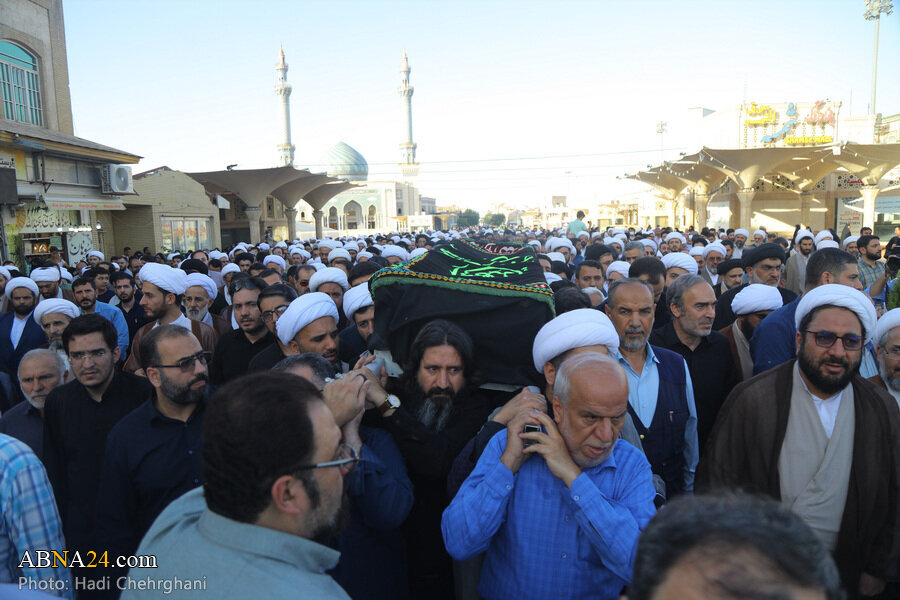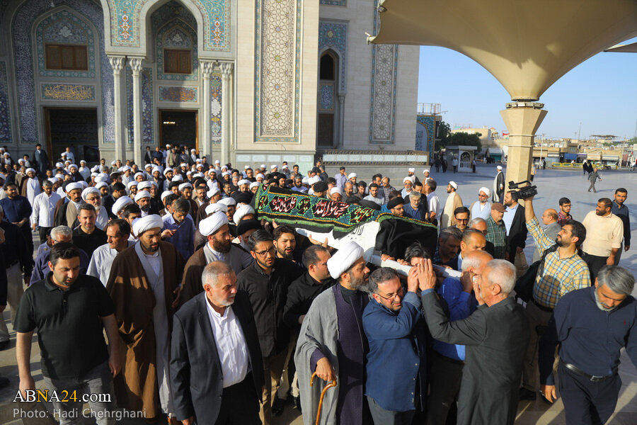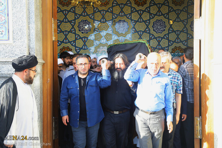 The body of the late Professor Mohammad Hossein Hashmatpour was carried from Imam Hassan Askari Mosque in Qom towards the shrine of Lady Masoumeh. After circumambulating the sacred tomb of the noble descendant of the Prophet and the funeral prayer led by Ayatollah Karimi Jahromi, his body was transferred to Mashhad for burial at the shrine of Imam Reza.