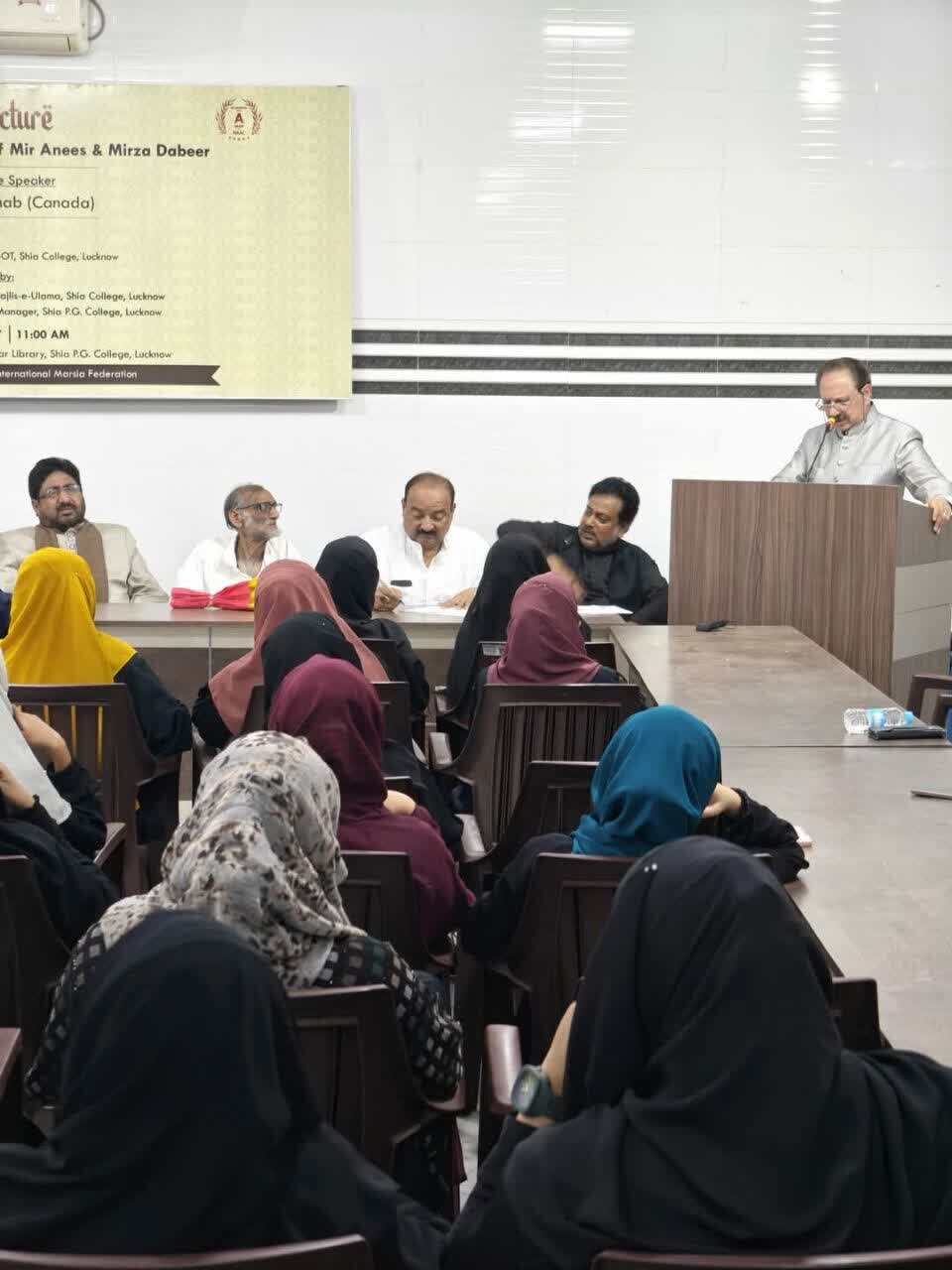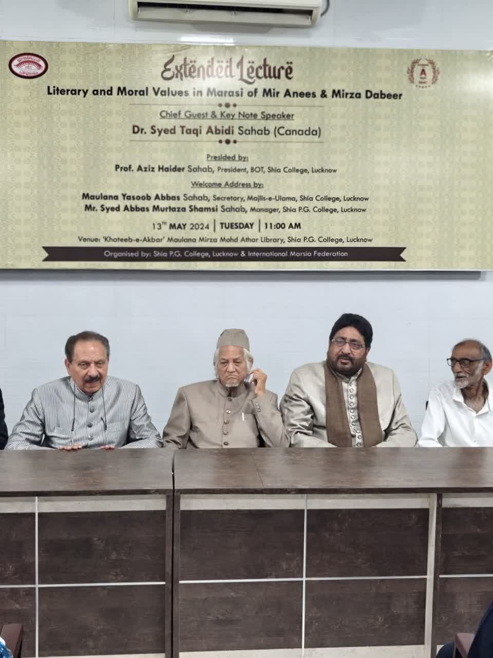 AhlulBayt News Agency: Shia Post Graduate College organized an extended lecture highlighting the rich literary and ethical dimensions in the Marasi of renowned Urdu poets Mir Anees and Mirza Dabeer, with distinguished scholar Dr. Syed Taqi Abedi from Canada as the chief guest.