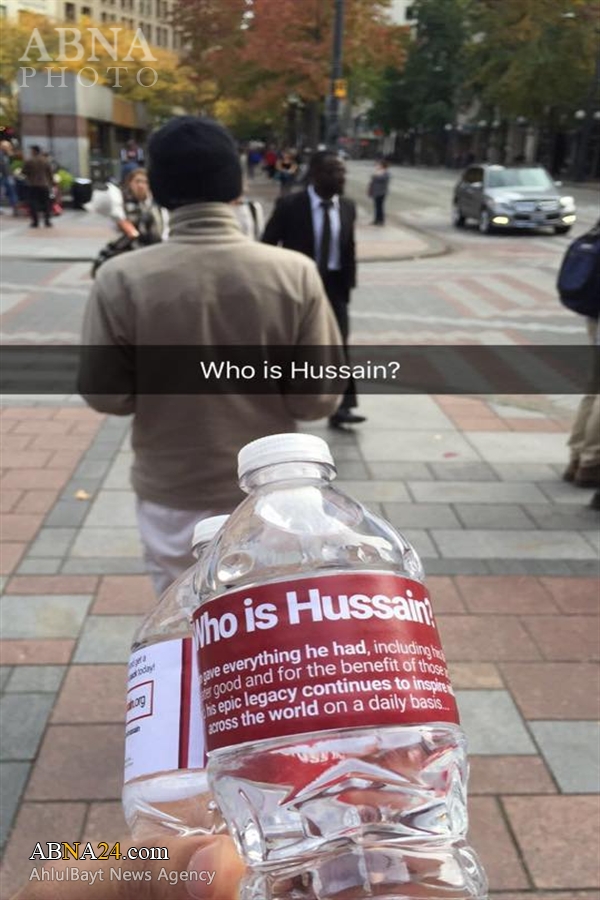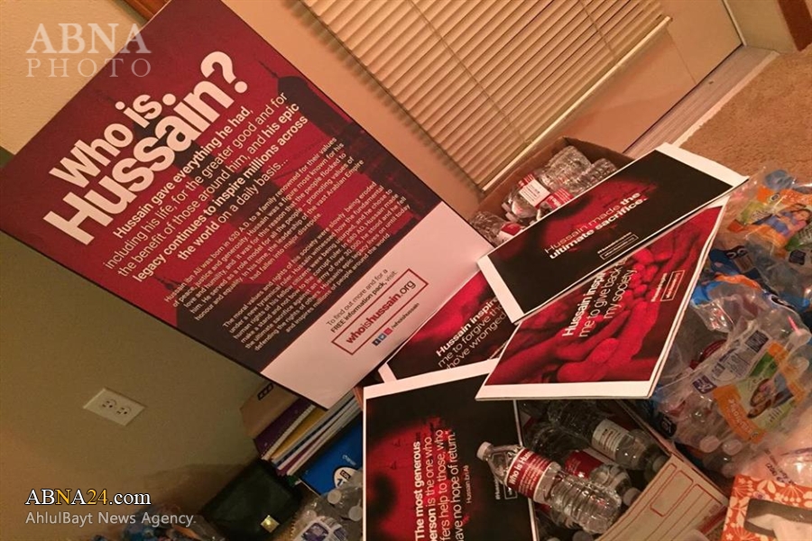 Organizers of “Who is Hussein?” Campaign distributed pamphlet and water bottles to local people to promote the Husseini culture in the community.