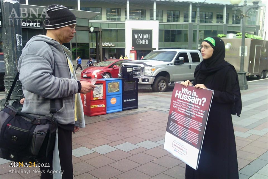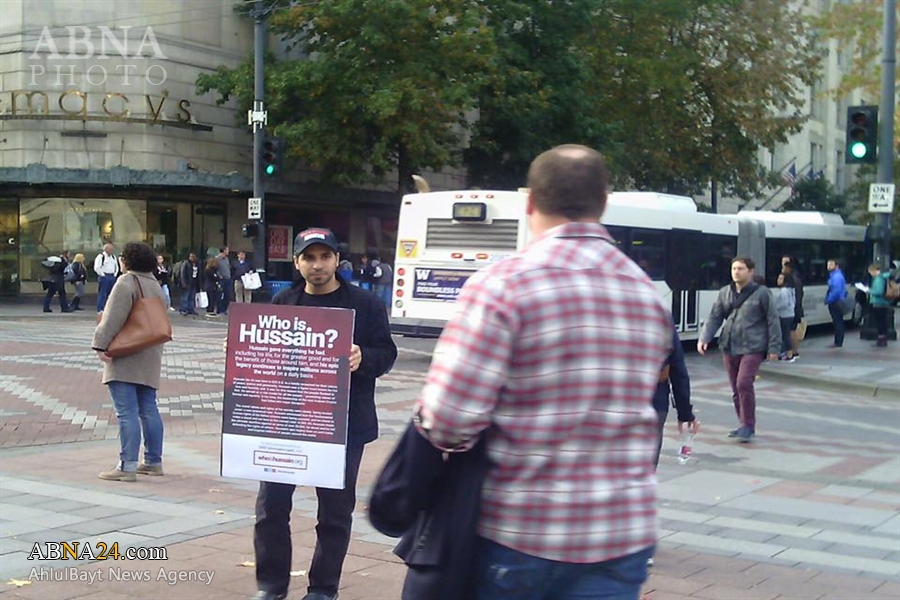 Ahlul Bayt News Agency - 'Who Is Hussain' campaign organized by youth people of University of Washington in city of Seattle (USA) on Oct. 2015. People of different cultures, and religions expressed high interest in learning more about Imam Hussain (A').
