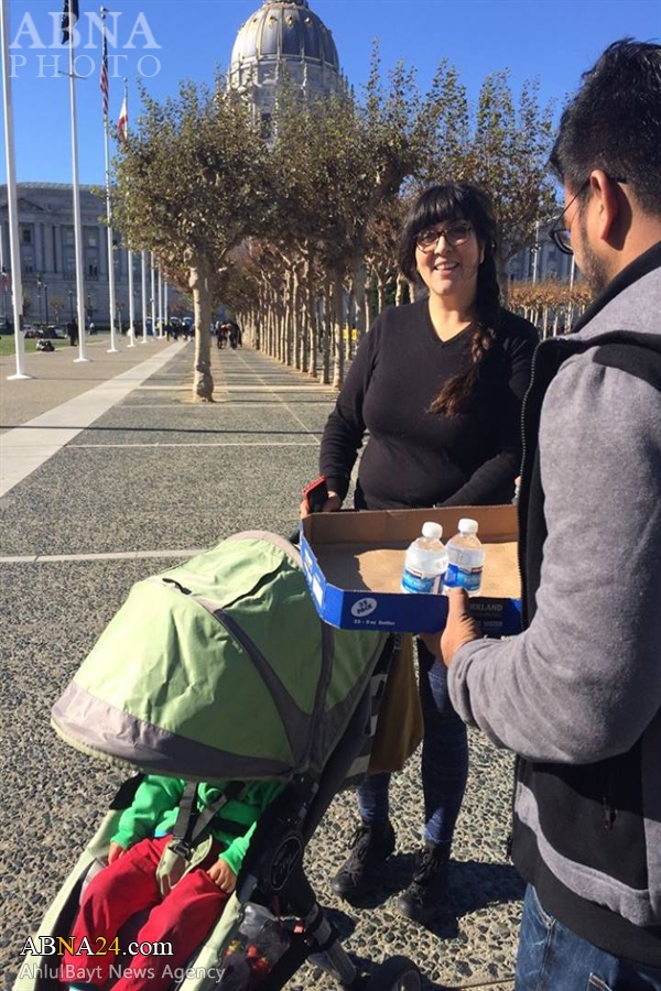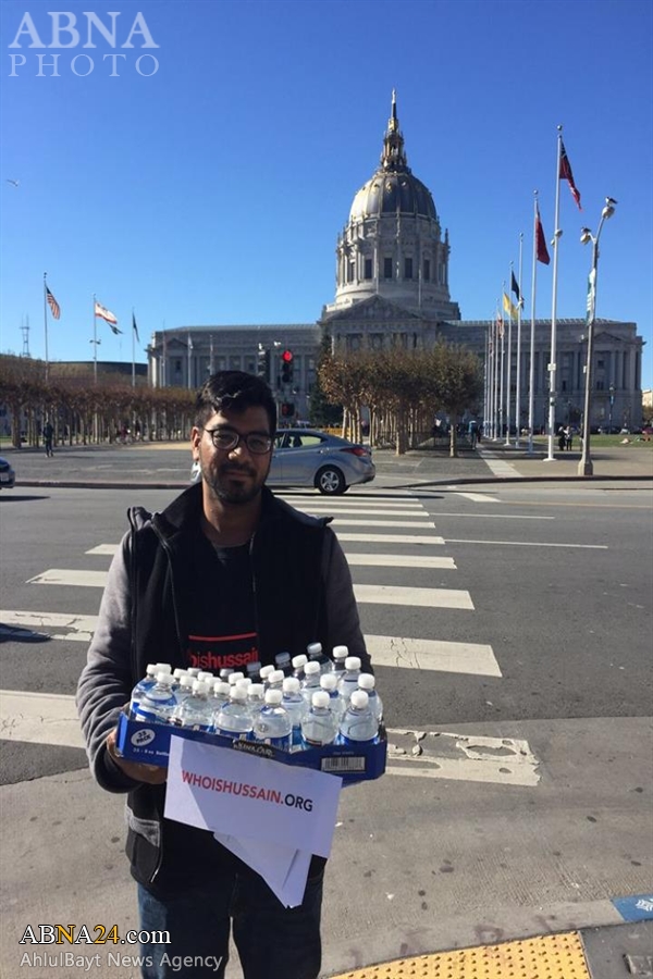 On the eve of Arbaeen the San Jose (California - USA) reps distributed 175 water bottles along with flyers in memory of Hussain ibn Ali, spreading the message about how Hussain doesn't belong to any religion and is for everyone.