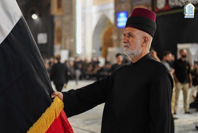 AhlulBayt News Agency: HThe ceremony of raising the flags of sorrow and grief, as a sign of mourning on the occasion of the anniversary of the martyrdom of Imam Jawad (a.s.), was held at the Al-Kazimayn shrine.