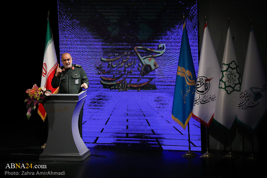 AhlulBayt News Agency: The closing ceremony of the 18th International Resistance Film Festival was held at the Vahdat Hall in Tehran, with the presence of Major General Hossein Salami, Commander-in-Chief of the IRGC, and veteran artists of the Sacred Defense Cinema.