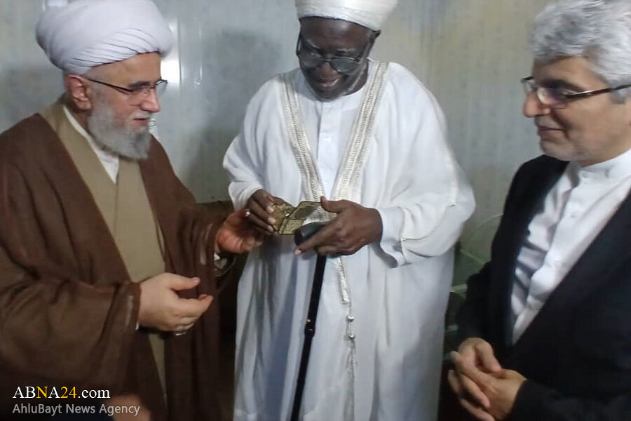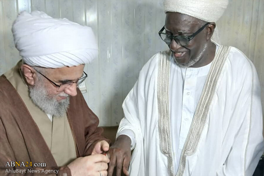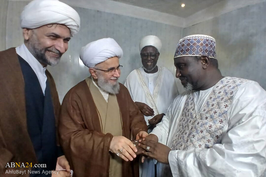 AhlulBayt News Agency: Ayatollah Reza Ramazani, Secretary General of the AhlulBayt (a.s.) World Assembly, who traveled to Niger at the invitation of religious figures, arrived in the city of "Kiota" in Niger. Upon entering the city of "Kiota", the Secretary General of the AhlulBayt (a.s.) World Assembly was warmly welcomed by the scholars and people of this city. Ayatollah Ramezani then met with "Musa Abu Bakr Al-Hashimi", the head of the Tijaniyya in the city of "Kiota". In this meeting, the Secretary General of the AhlulBayt (a.s.) World Assembly emphasized the necessity of unity among Islamic sects.