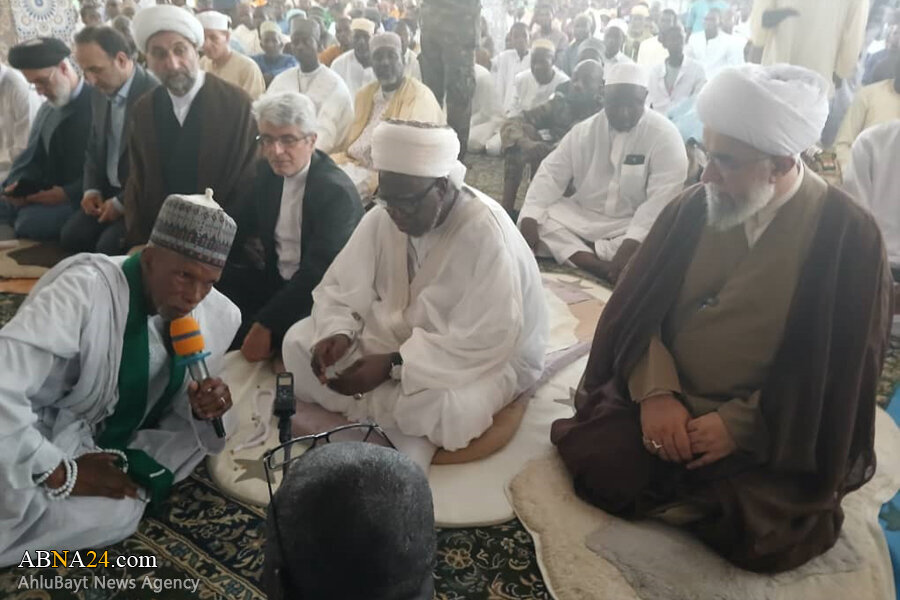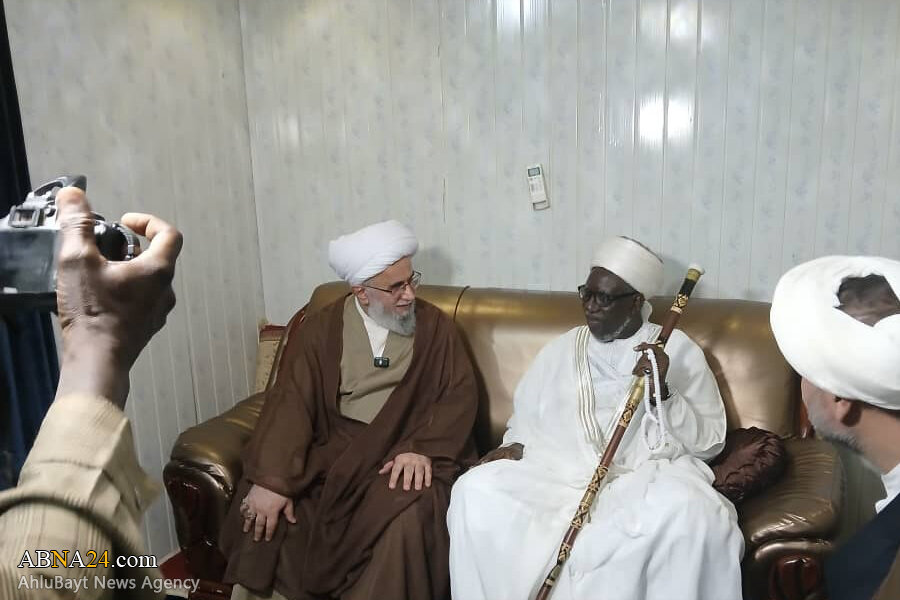 AhlulBayt News Agency: The Secretary General of the AhlulBayt (a.s.) World Assembly, who traveled to Niger at the invitation of religious figures, met with "Musa Abu Bakr Al-Hashimi", the head of the Tijaniyya, in the city of "Kiota" and attended Friday prayers in the city of "Kiota".