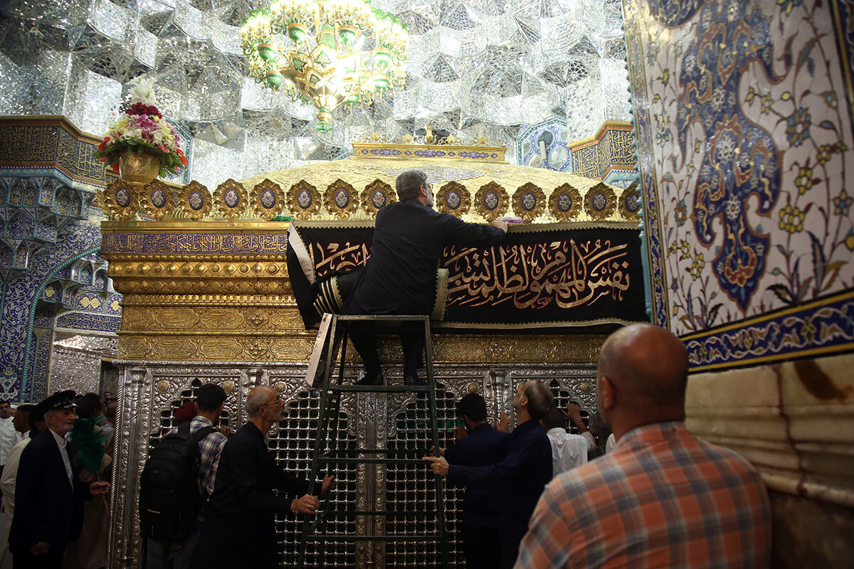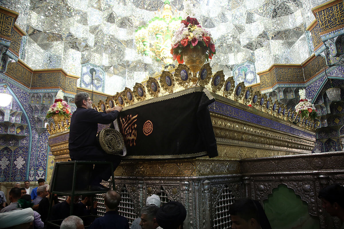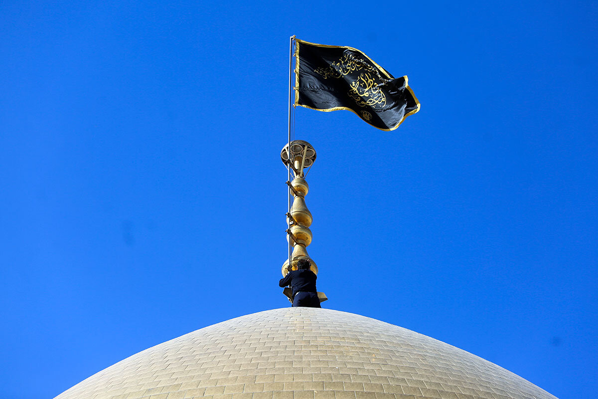 AhlulBayt News Agency: Mourning flag hoisted on Hazrat Masoumeh (s.a.) shrine dome on eve of Imam Baqir (a.s.) martyrdom anniversary.