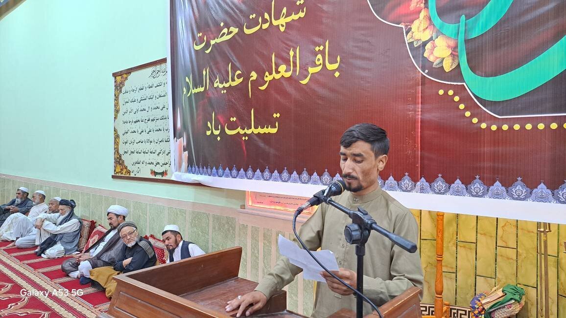 Home News Service Pictures Photos: Imam Baqir mourning ceremony held in Lashkargah, Afghanistan AhlulBayt News Agency: Imam Baqir (a.s.) mourning ceremony was held at Hussaini Grand Mosque in Lashkargah, Afghanistan. 5 June 2025 - 11:17 News ID: 1695544 Source: Abna24 Tags imam baqir afghanistan related Photos: Imam Baqir mourning ceremony held in Kabul Photos: Imam Baqir mourning ceremony held by office of Ayatollah Fazel Lankarani in Mecca Photos: Imam Baqir mourning ceremony held in Daikundi, Afghanistan Hajj is a unique and unparalleled global Islamic assembly - Australian Friday Prayer Imam Photos: Razavi shrine hosts mourning ceremonies for Imam Baqir’s martyrdom anniv. Photos: Friday Prayer of Afghanistan’s Shia Community in Lashkargah Salient Features of Imam Baqir's Character Photos: Imam Baqir mourning ceremony held at Hazrat Masoumeh shrine Afghanistan: Nearly 120 schools in Khost lack buildings, education officials confirm