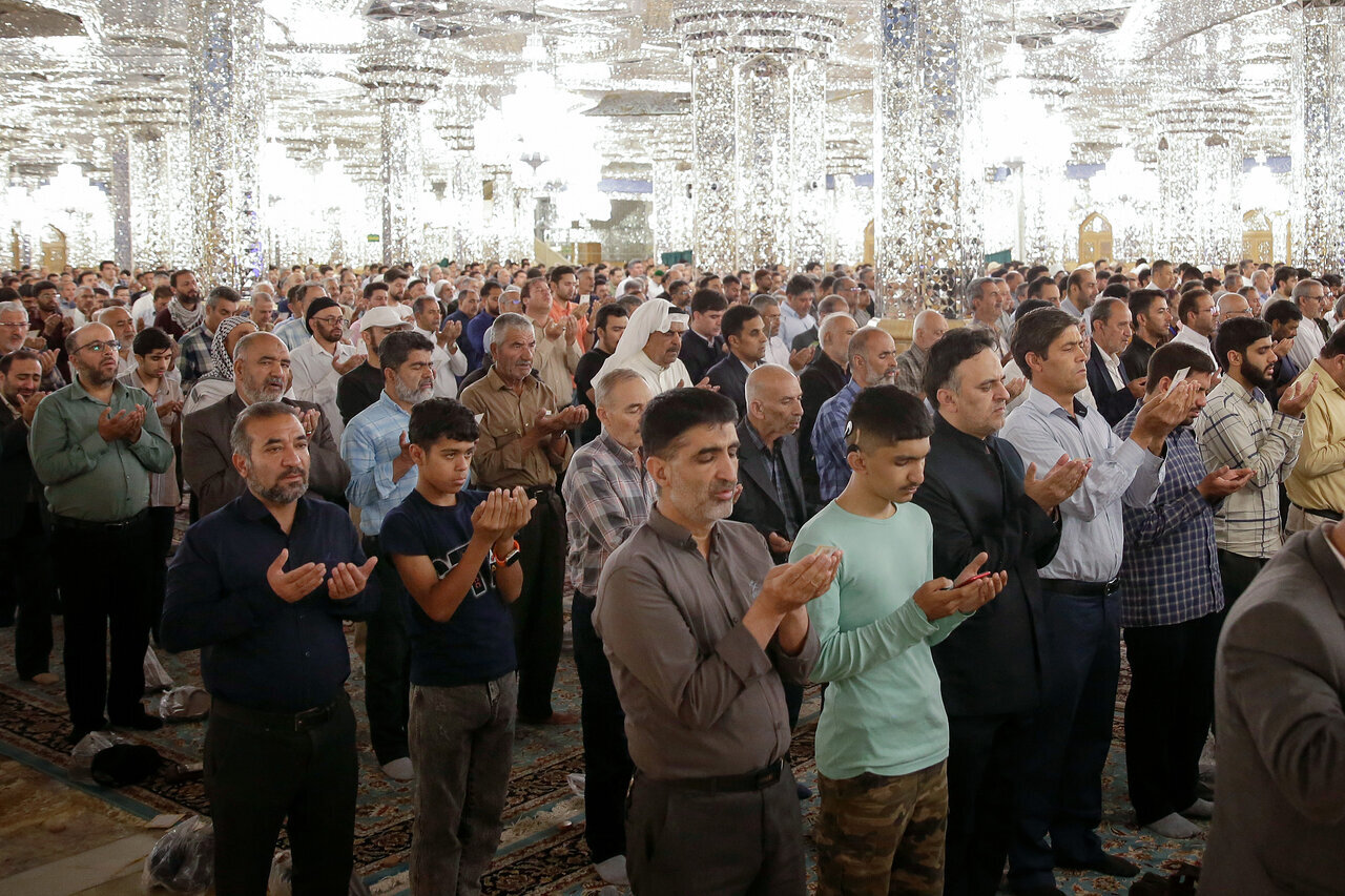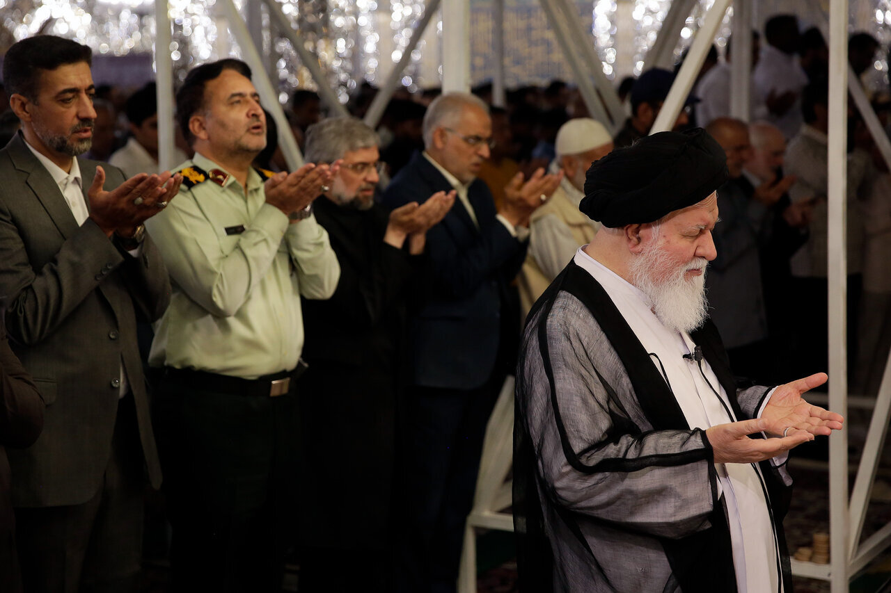 AhlulBayt News Agency: The magnificent Eid al-Adha prayers led by Ayatollah Seyyed Ahmad Alamolhoda, Leader’s representative in Khorasan Razavi province, was held at Imam Reza Shrine on Friday in all courtyards and porticos of the holy complex.