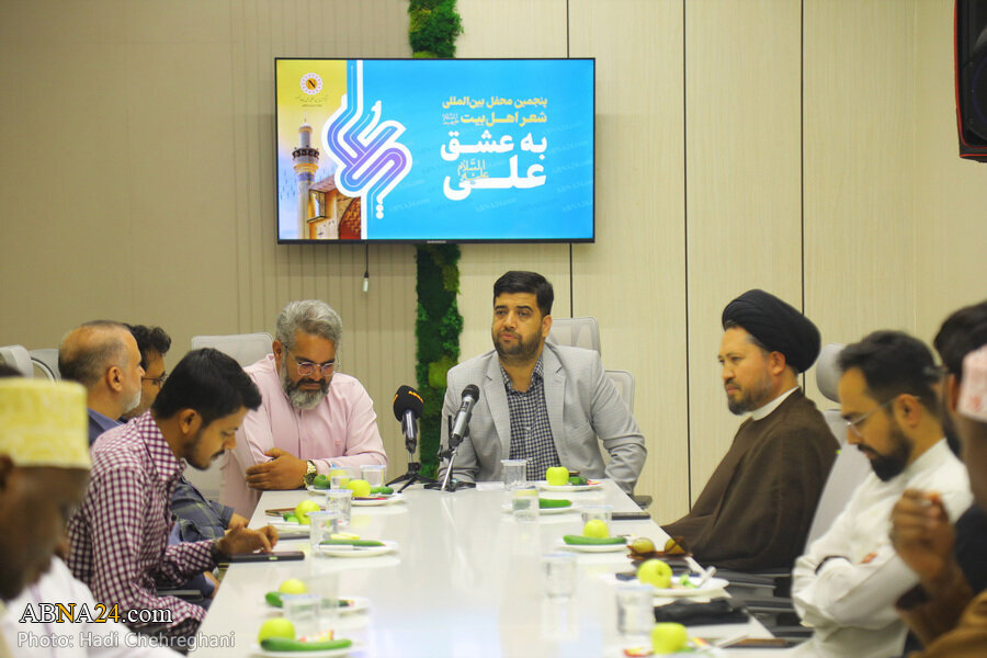 AhlulBayt News Agency: The fifth AhlulBayt (a.s.) International Poetry Gathering, entitled the poetry gathering "For the Love of Ali (a.s.), was held on Saturday in the conference hall of the AhlulBayt (a.s.) News Agency - ABNA. In the gathering, which was held on the occasion of the arrival of Eid al-Ghadir, poets from 10 nationalities were present and recited poems in praise of the Imam Ali (a.s.).