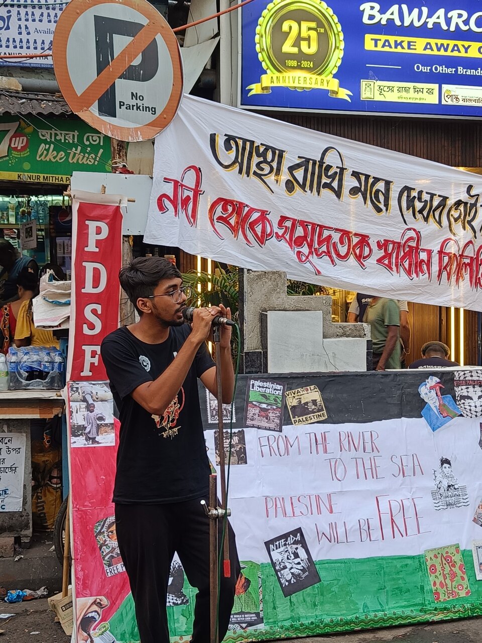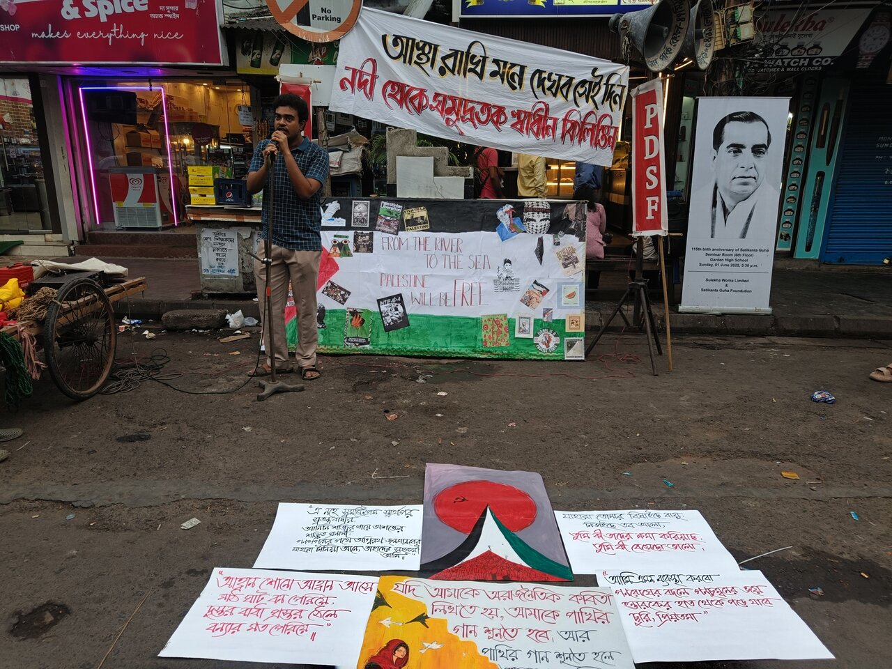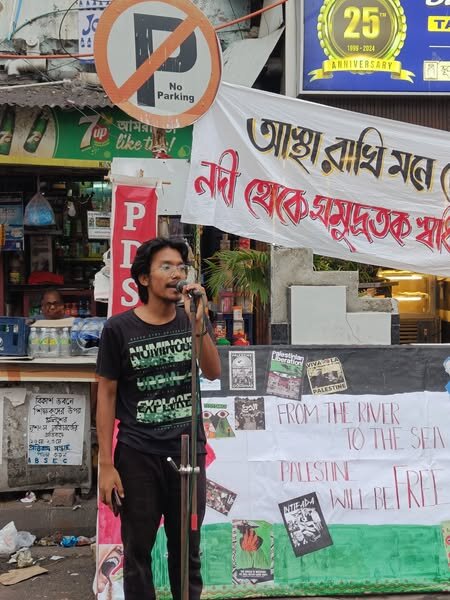 AhlulBayt News Agency: Progressive Democratic Students’ Federation (PDSF) comrades gathered at 8B Jadavpur, South Kolkata, West Bengal to protest the ongoing genocide in Gaza, denouncing Israel’s apartheid regime and U.S. support for it. They condemned the abduction of the Madleen boat and its 12 activists, and criticized the detention of student protestors in Delhi by police acting under the current government.