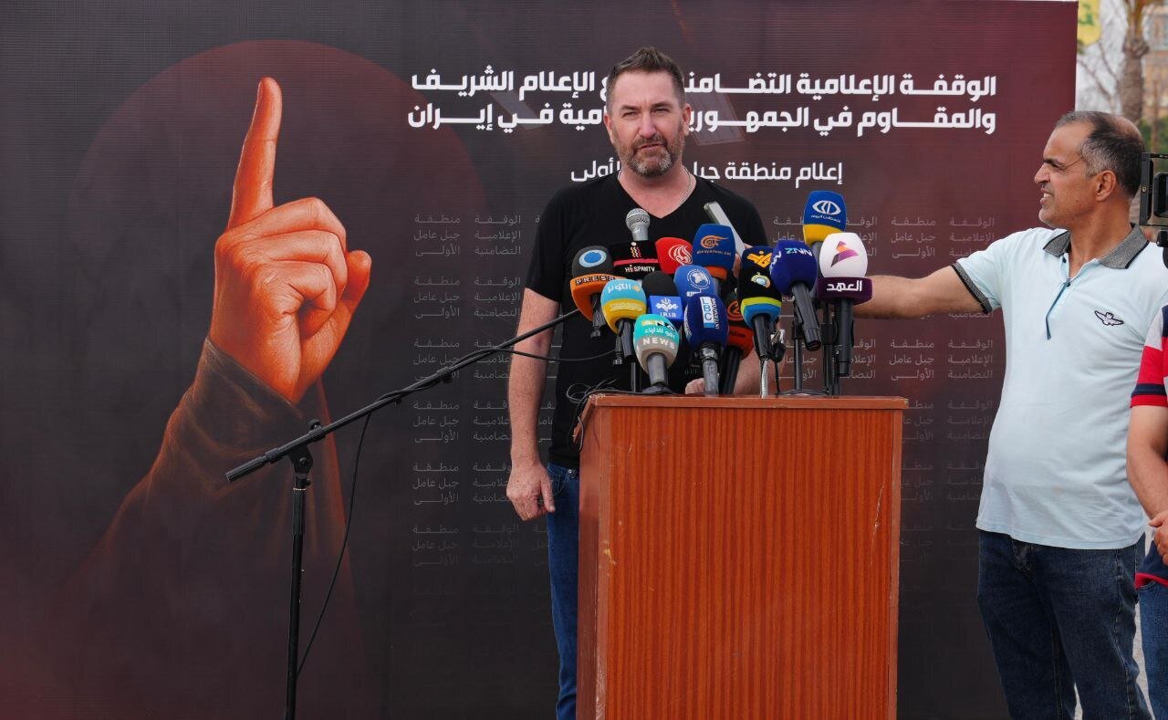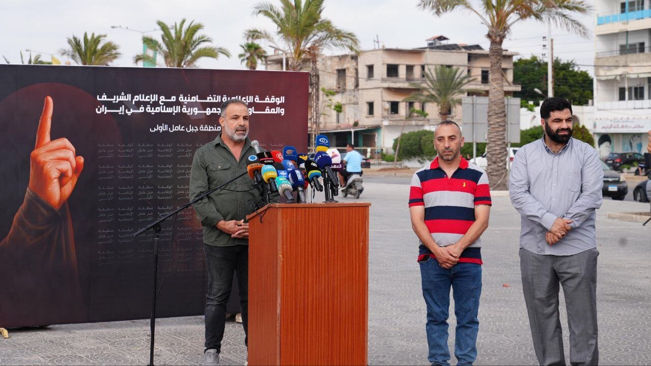AhlulBayt News Agency: Following the brutal and inhumane attack by the Zionist regime on the building of the IRIB in Tehran, a group of Lebanese media members gathered in the city of Tyre in the south of the country to condemn this crime.