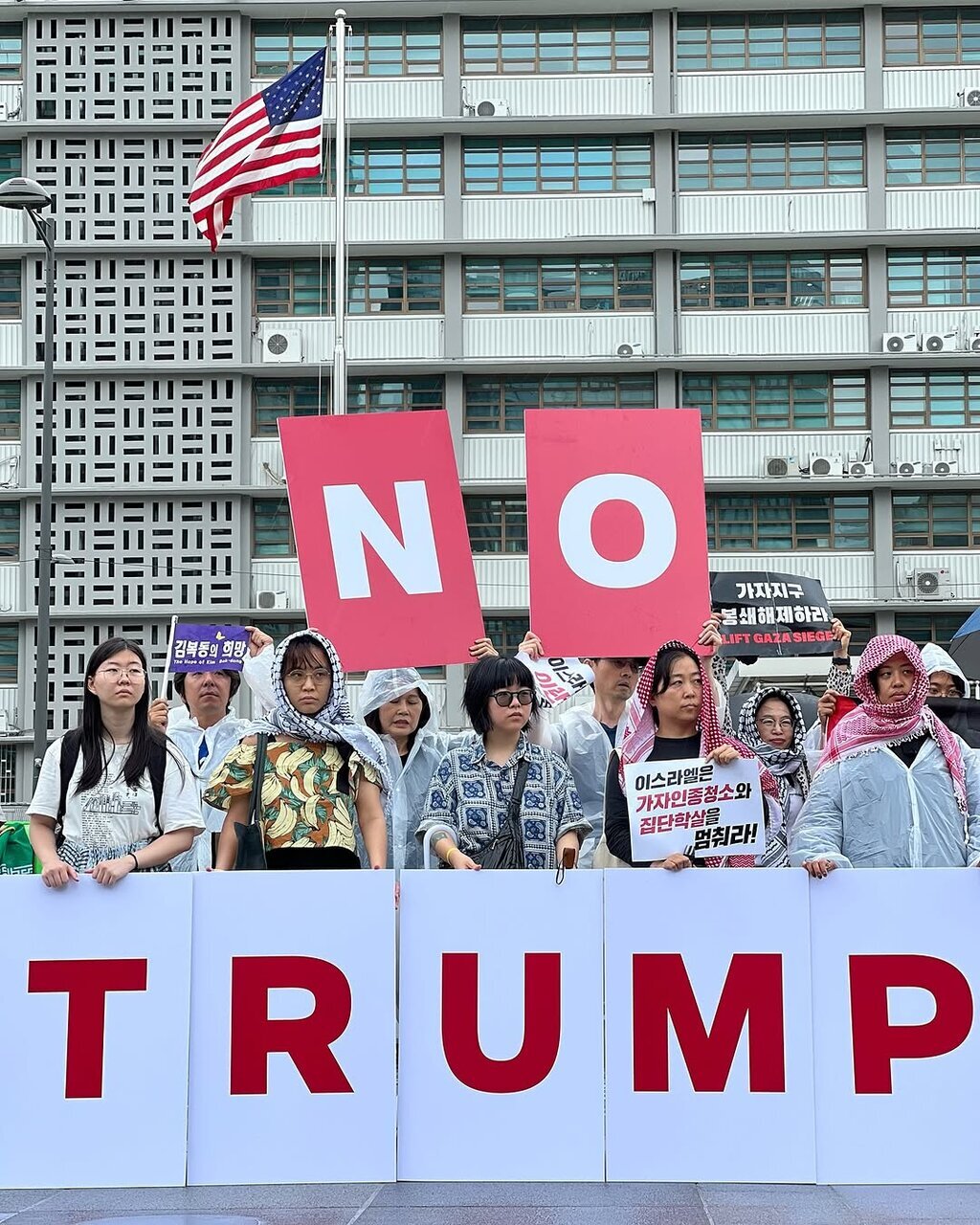 AhlulBayt News Agency: A group of South Korean citizens held a rally in front of the US and Israeli embassies in Seoul, the capital of South Korea, to condemn the Zionist regime's invasion of Iran.