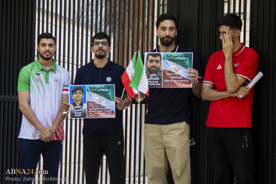 AhlulBayt News Agency: A group of athletes and heads of sports federations gathered in front of the UN headquarters in Tehran on Saturday, June 21, 2025, to condemn the killing of athletes and civilians in Iran by the Zionist regime.