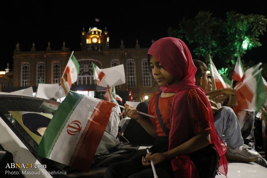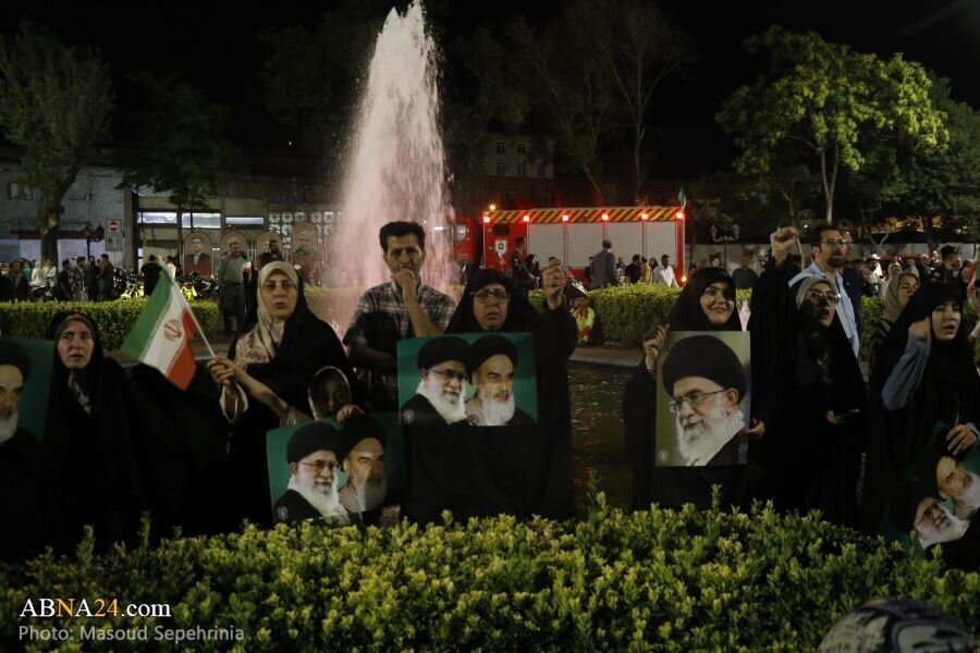 AhlulBayt News Agency: A gathering of the people of Tabriz in support of the armed forces of the Islamic Republic of Iran and renewed allegiance to the Supreme Leader was held on the evening of Tuesday in the city's Clock Square, with the presence of different segments of the people of Tabriz and the city's Friday Imam.