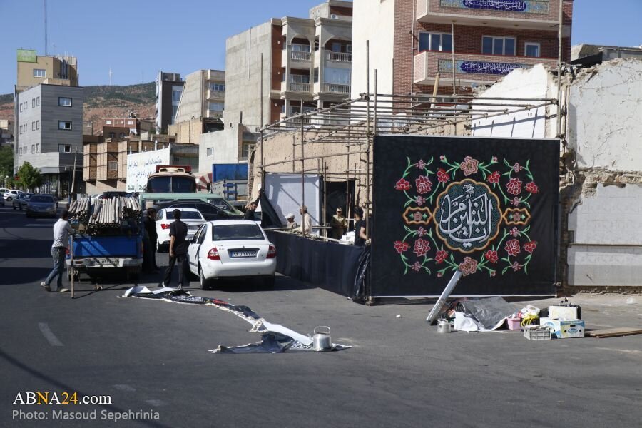 AhlulBayt News Agency: The people of Tabriz prepared for the beginning of the month of Muharram by raising the mourning flag and covering the city in black.