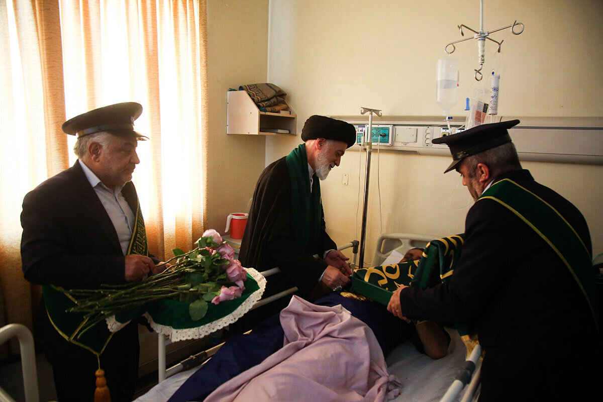 AhlulBayt News Agency: A group of servants of the Holy Shrine of Hazrat Fatima Masoumeh (s.a.) visited the Shahid Beheshti Hospital in Qom to visit those injured in the attacks of the Zionist regime.