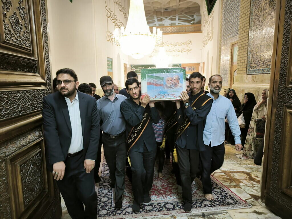 AhlulBayt News Agency: The holy body of martyred IRGC Colonel Meysam Solgi, who was a servant of the shrine of Hazrat Fatima Masoumeh (s.a.) for many years, was circumambulated around the holy shrine.