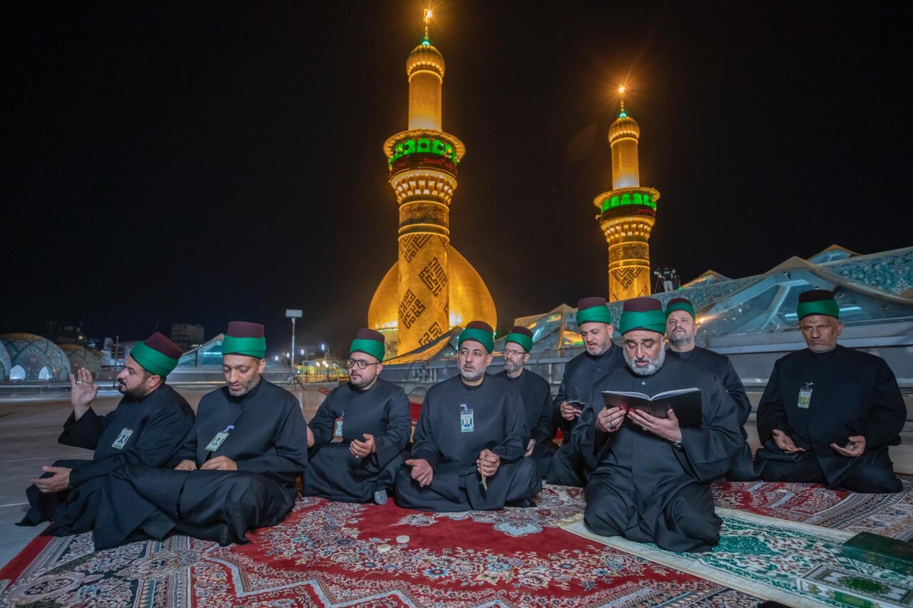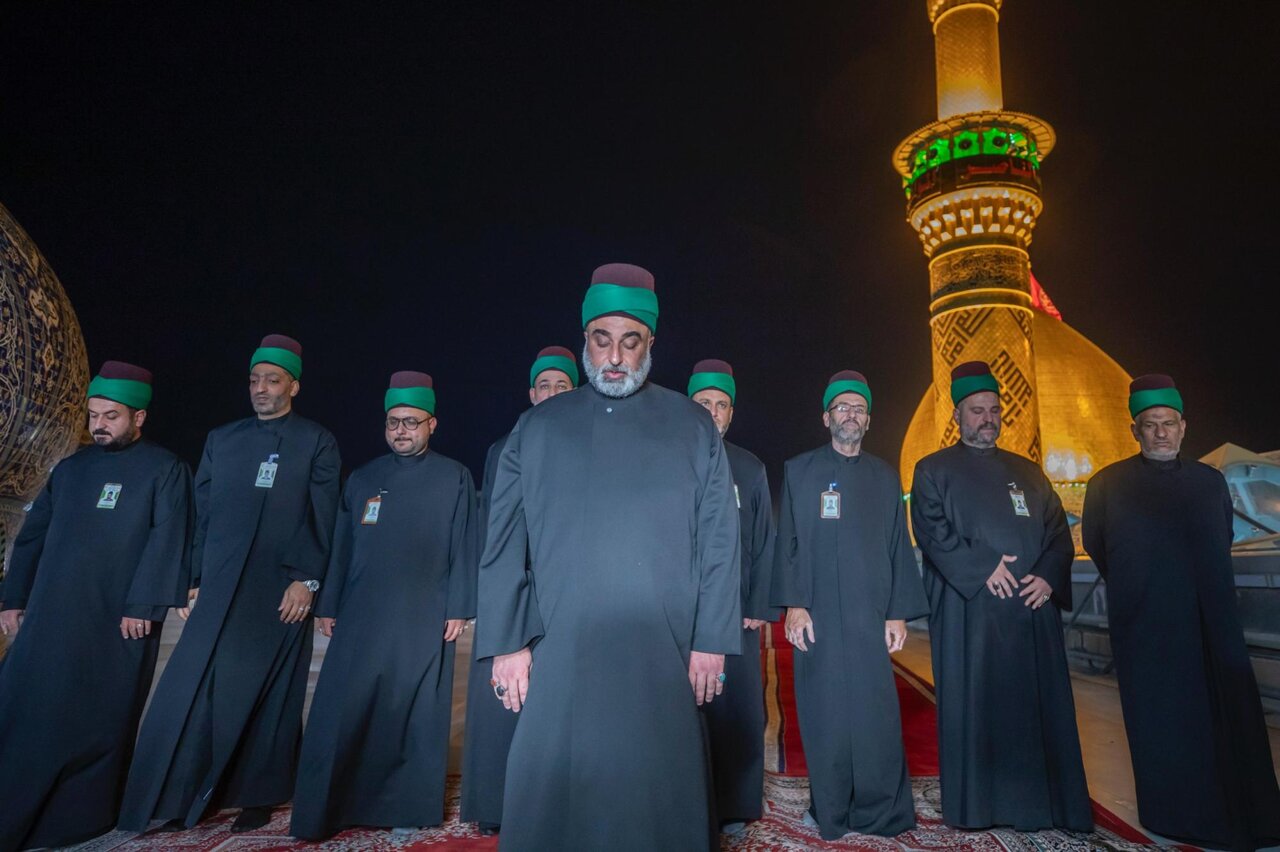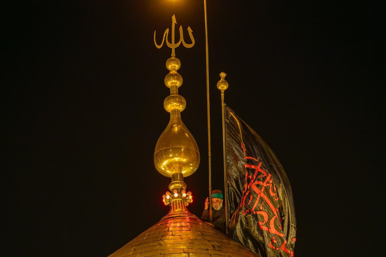 The staff of the holy shrine placed black flags and banners on the minarets, the corridors of the holy courtyard, the sacred shrine, and the outer wall.