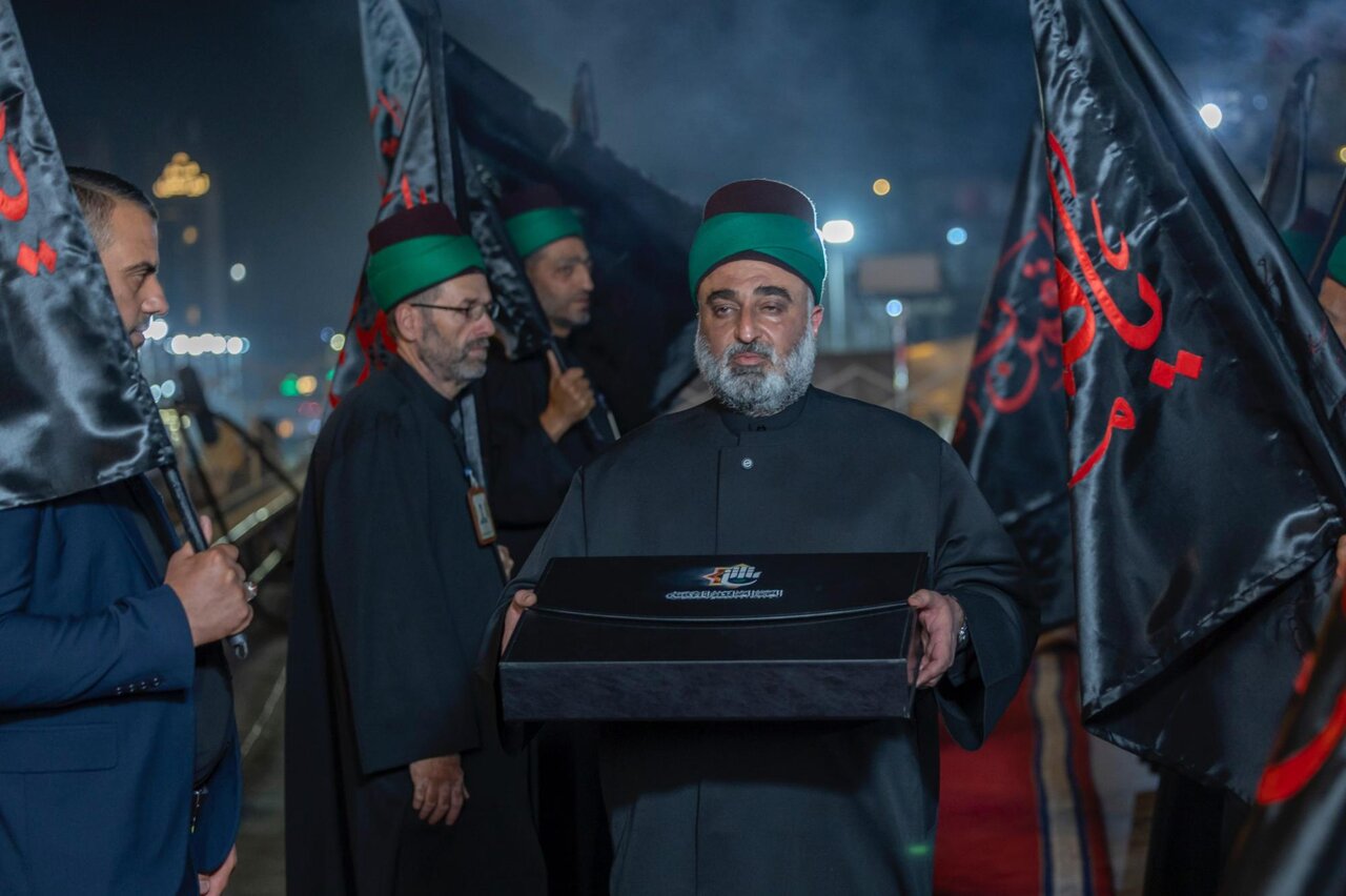 The Secretary-General of the Al-Abbas's (p) Holy Shrine; Sayed Mustafa Murtada Aal Dia-Uddin, conducted the flag replacement ceremony.