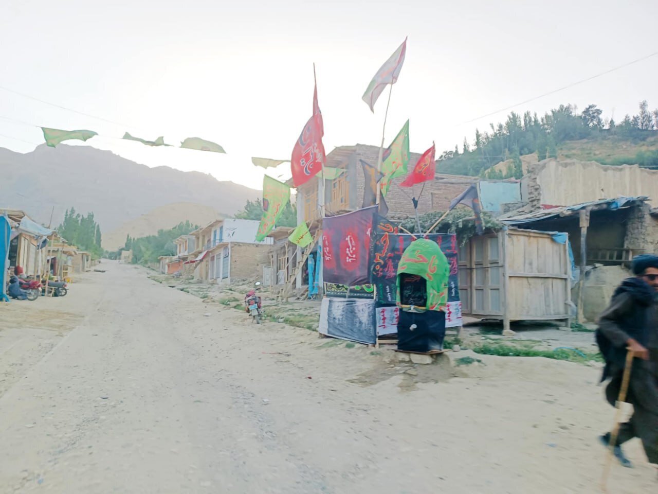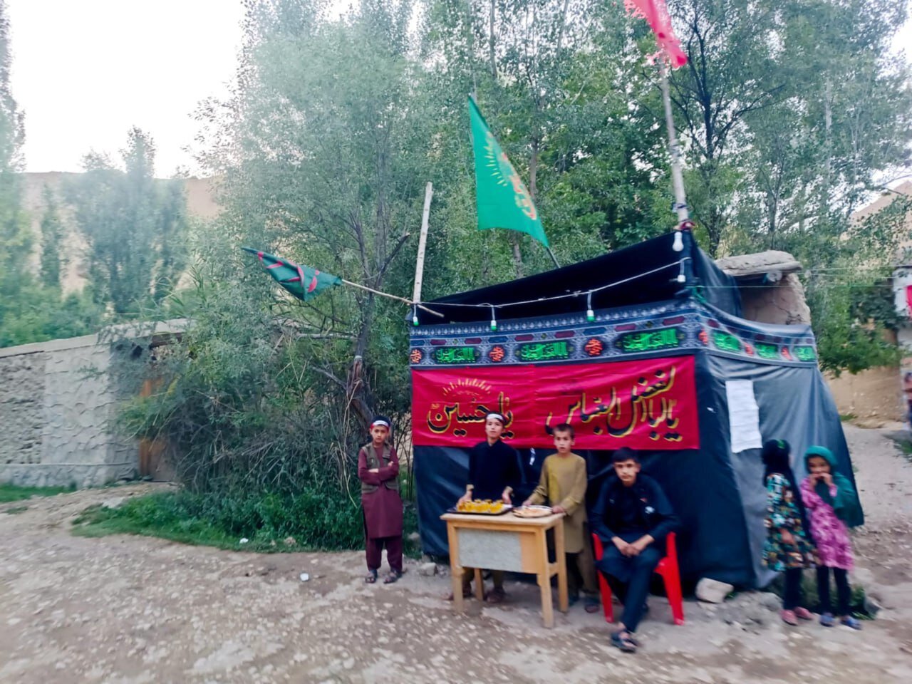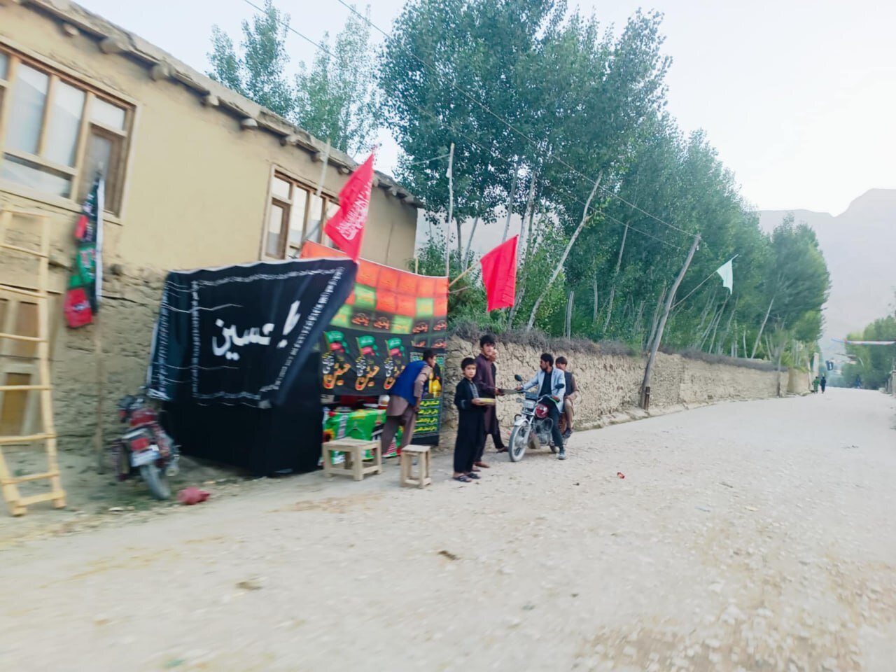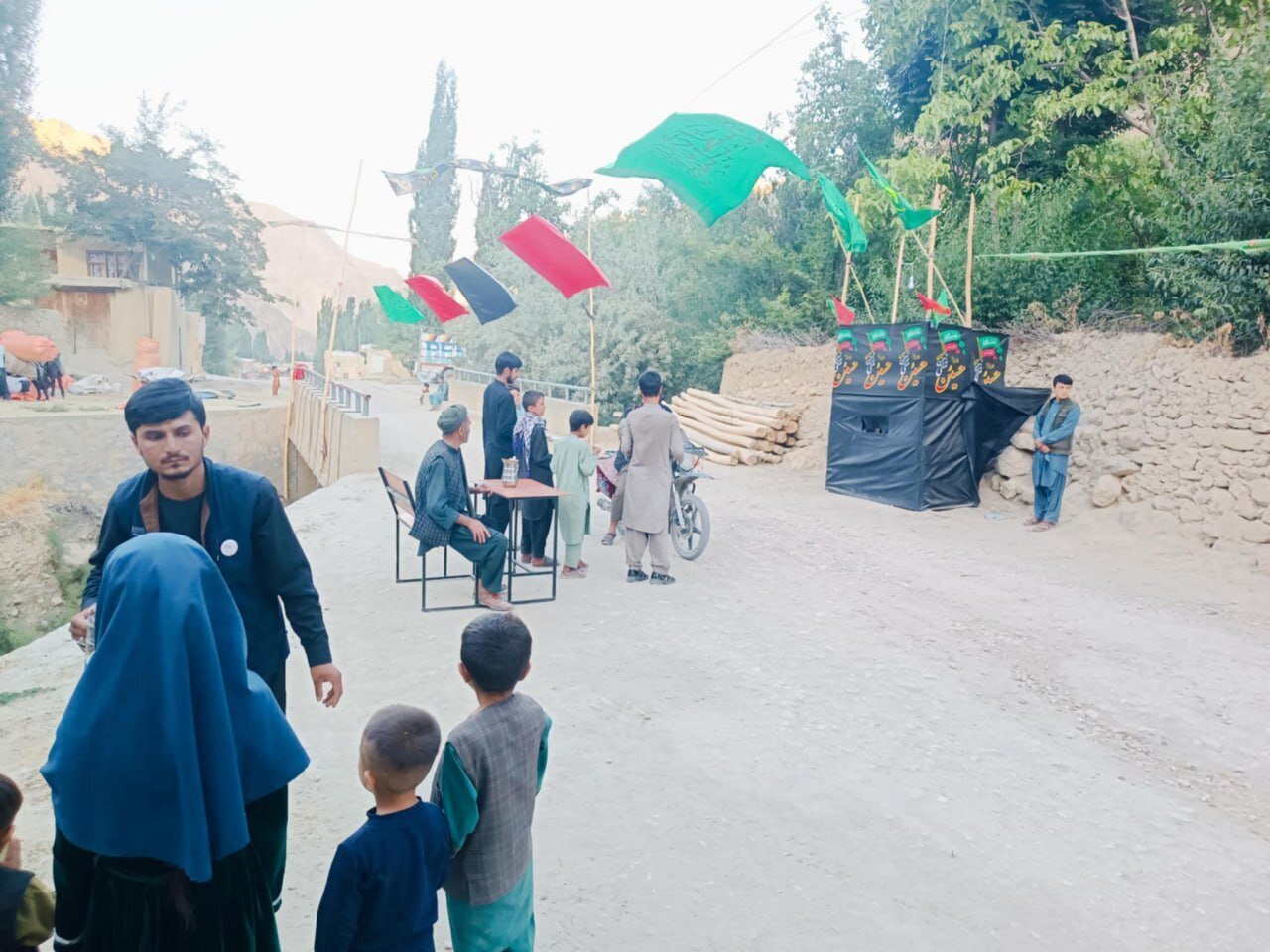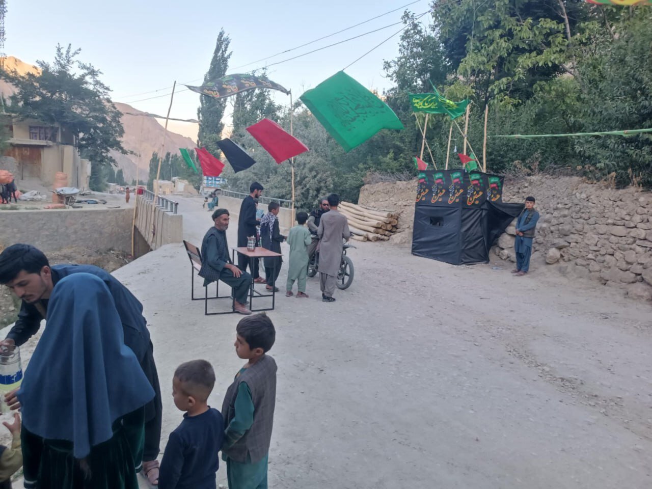 According to AhlulBayt News Agency – ABNA – The Shia residents of the village of Khawal Siahgak in Balkhab District, Sar-e Pol Province, Afghanistan, marked the arrival of Muharram by raising black flags throughout the village. They also distributed tea and sherbet to both locals and travelers passing through.