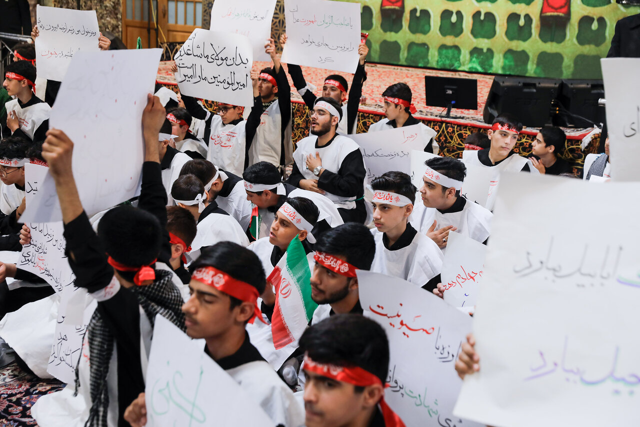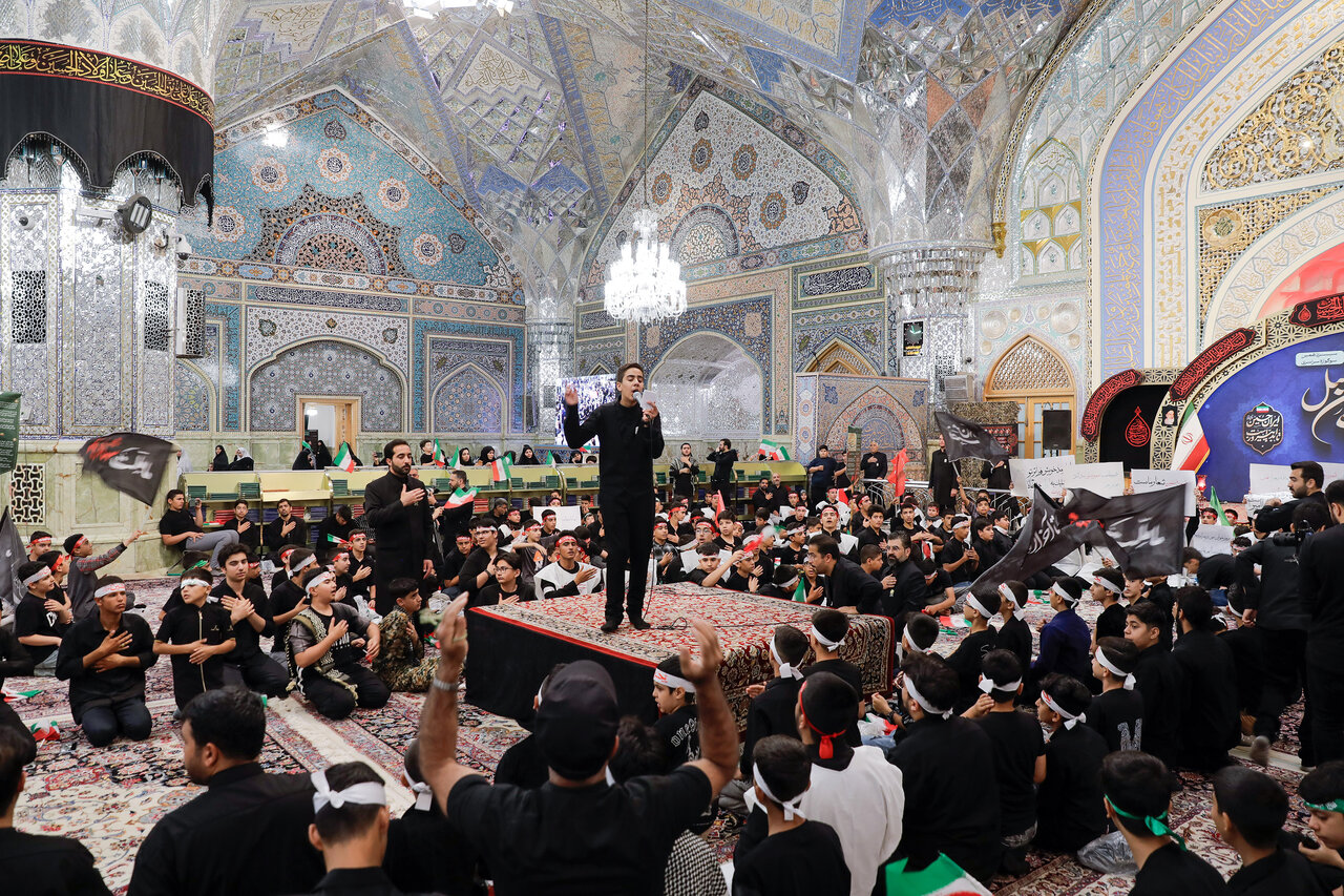 AhlulBayt News Agency: On Wednesday, July 2, 2025, the “Ahla Min al-Asal” ceremony was held at Imam Khomeini Portico of Imam Reza shrine. The event featured mourning rituals by teenage boys, inspired by the sacrifice of Hazrat Qassem ibn Hasan—the young martyr of Karbala—whose famous words, “Martyrdom is sweeter than honey,” gave the ceremony its name.