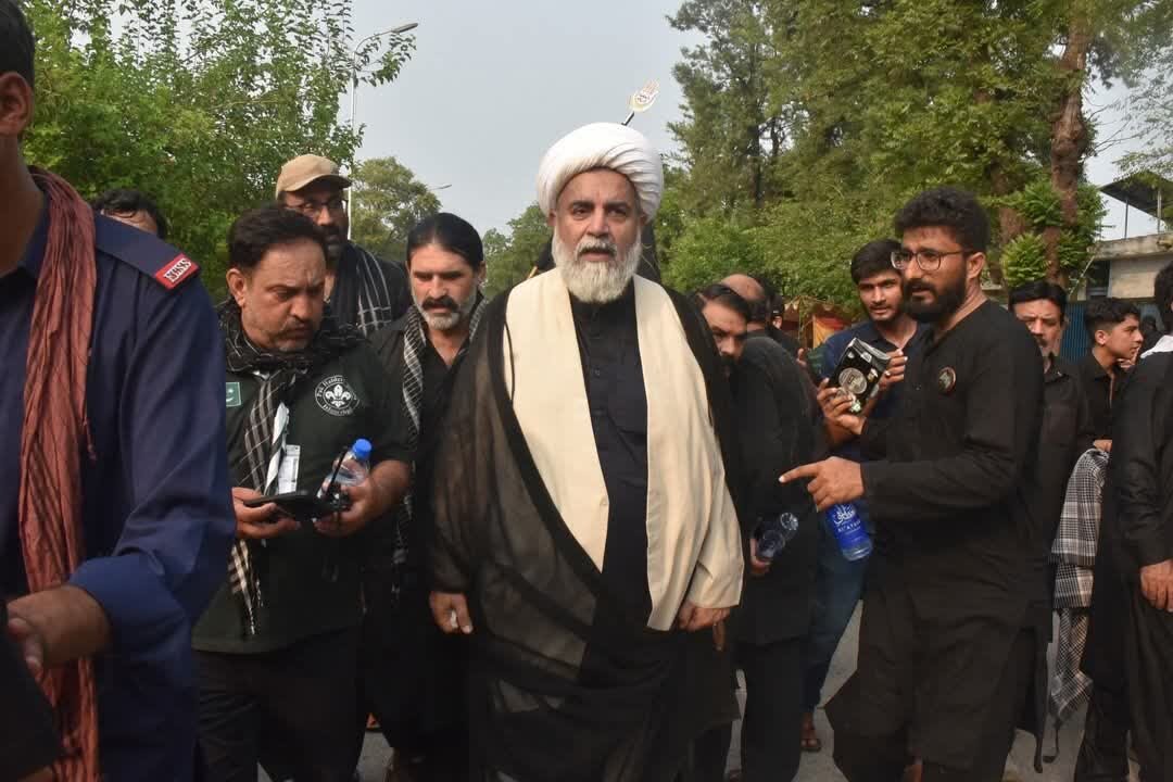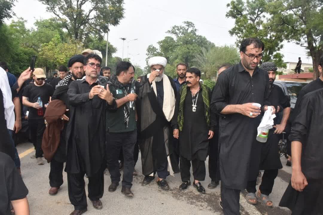 AhlulBayt News Agency: On the day of 9th Muharram, Tasu'a, Shias of Islamabad took out a procession in memory of Imam Hussain. Pakistani Senator and Majlis-e-Wahdatul Muslimeen Chairman Raja Nasir Abbas Jafri also participated in this procession.