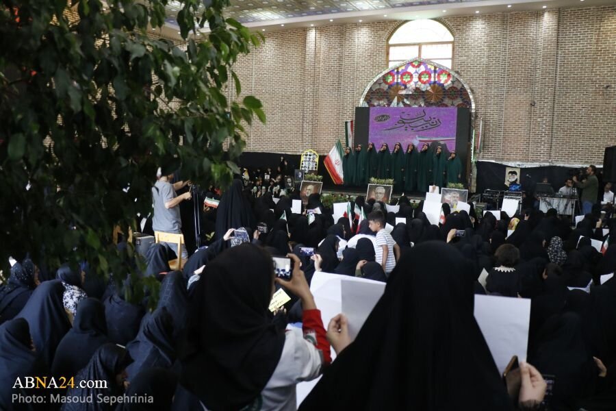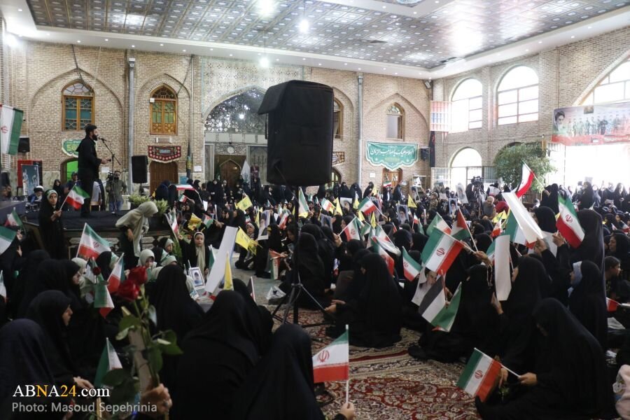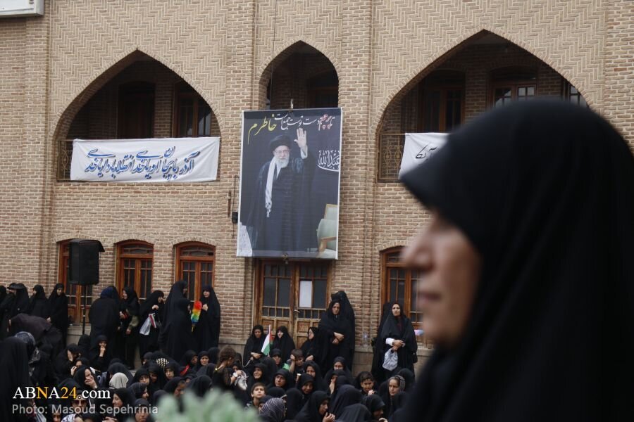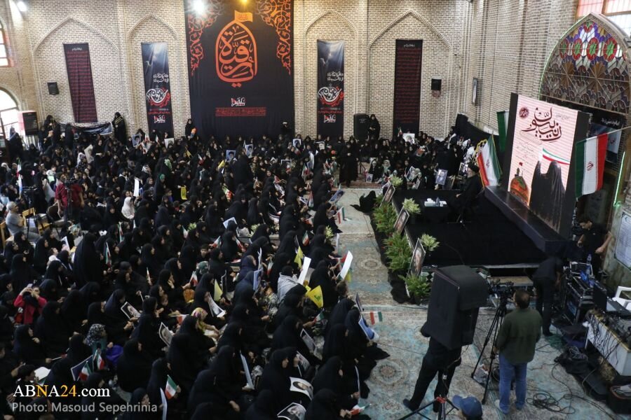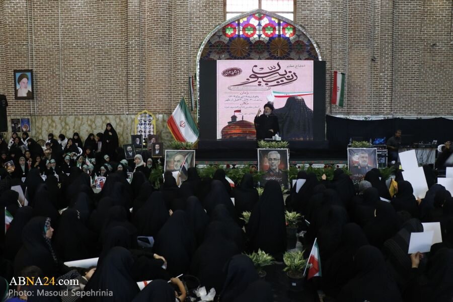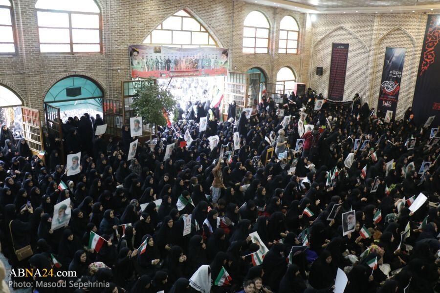 AhlulBayt News Agency: A mass gathering of Zainabiyoun and a ceremony of allegiance to the Supreme Leader of the Islamic Revolution, attended by revolutionary women and girls, families of martyrs, and families of martyrs of the 12-day imposed war, was held at Imamzadeh Seyyed Hamzeh in the city of Tabriz.