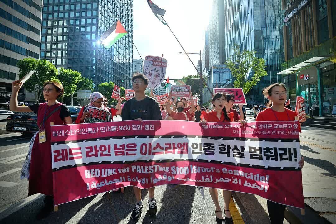 Home News Service Pictures Photos: Continued demonstrations in solidarity with oppressed people of Palestine in Seoul, South Korea 14 July 2025 - 09:42 News ID: 1707615 Source: Abna24 related Video: Ashura mourning ceremony held in Seoul, South Korea Photos: South Koreans rally to condemn Zionist regime's aggression to Iran Video: Seoul expresses disgust at Netanyahu's crimes in Gaza Photos: Installing posters for October 18 mass Pro-Palestine rally in Seoul, South Korea Korean food tech firm collaborates with Halal Science Center for certification Photos: Protests in Seoul, South Korea, in solidarity with oppressed people of Gaza Photos: Koreans march in support of oppressed people of Palestine Hey Israeli, get out! Korean restaurants and Greek cafés are no place for cannibals! Photos: Demonstration in support of Palestine held in Seoul, South Korea Photos: Koreans protest in Seoul against plan to displace Palestinians Seoul central mosque reopens with Turkish-inspired renovation Fundraising event for the people of Gaza held in the South Korean capital + pictures