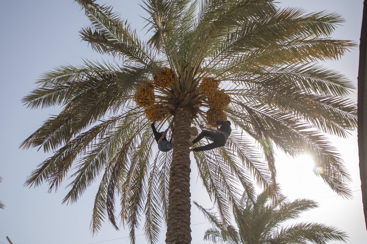 Photos: Harvesting dates from central courtyard palm trees of Bayn al-Haramayn for distribution to visitors