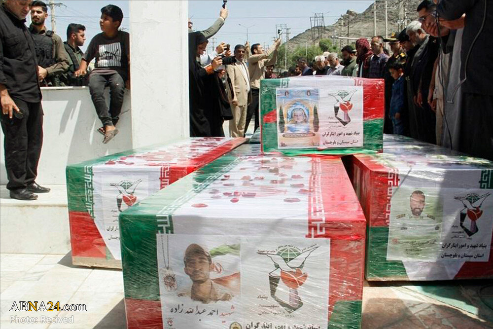 According to AhlulBayt (AS) International News Agency – ABNA – the purified bodies of the martyrs of the terrorist attack on the Zahedan Judiciary were laid to rest this morning, Sunday, July 27, 2025. The funeral procession began at Imam Hussein (AS) Square and moved toward Zahedan’s Martyrs Cemetery, with the participation of Shia and Sunni people from Sistan and Baluchestan Province.
