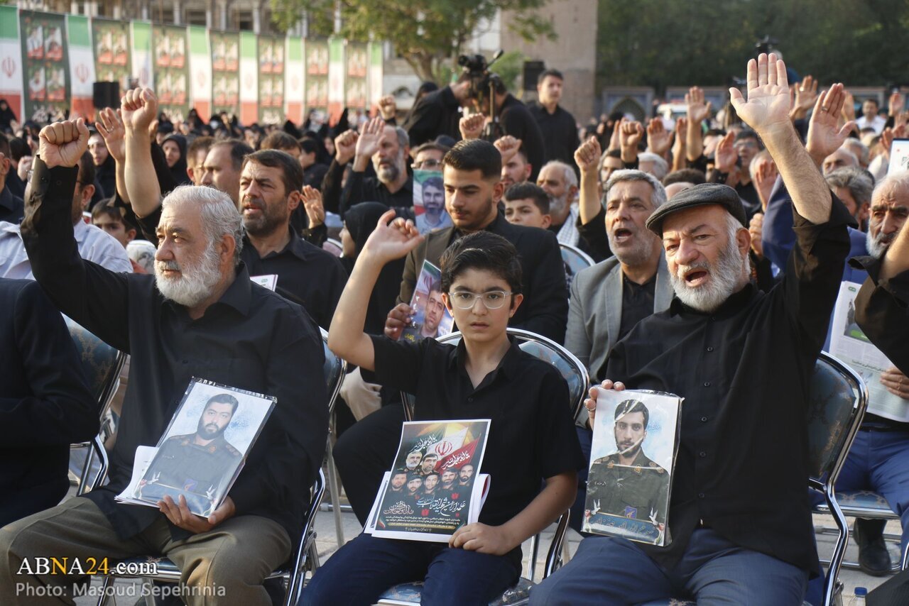 According to the Ahlul Bayt International News Agency (ABNA), the 40th day of martyrdom of the defenders of security and authority of East Azerbaijan was held on Sunday evening, July 28, 2025, in the presence of the families of the martyrs, military and state officials, and the enthusiastic and epic presence of the people in the area of the Imam Khomeini (RA) Grand Mosque in Tabriz.