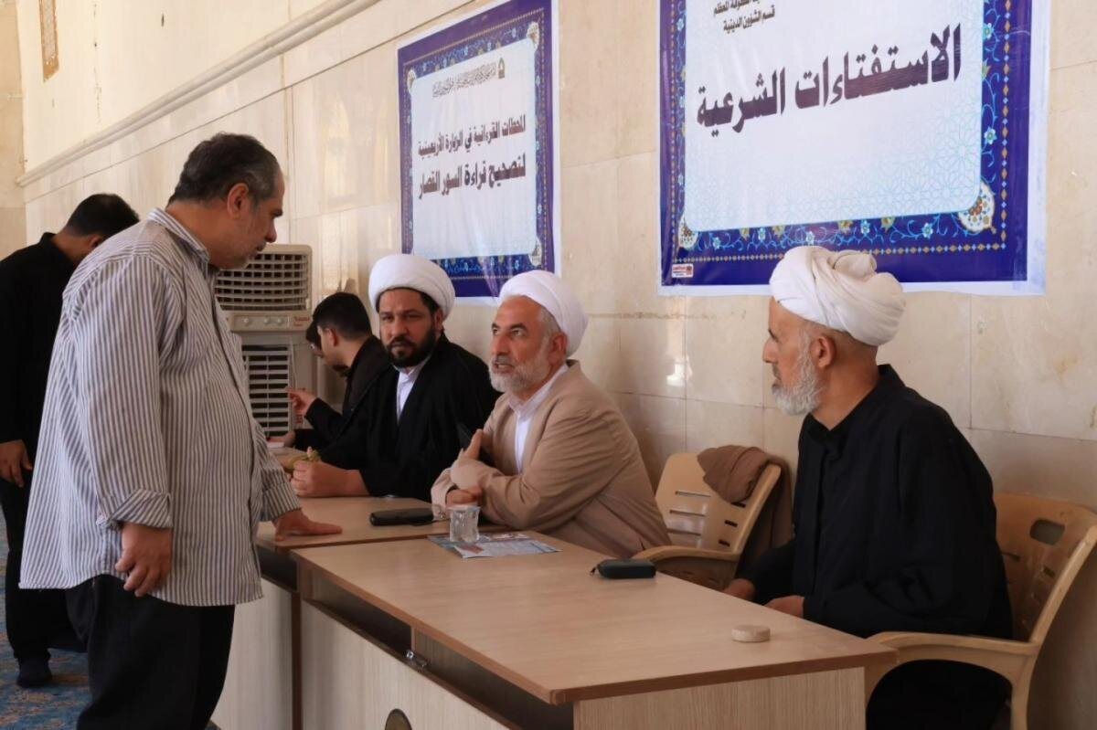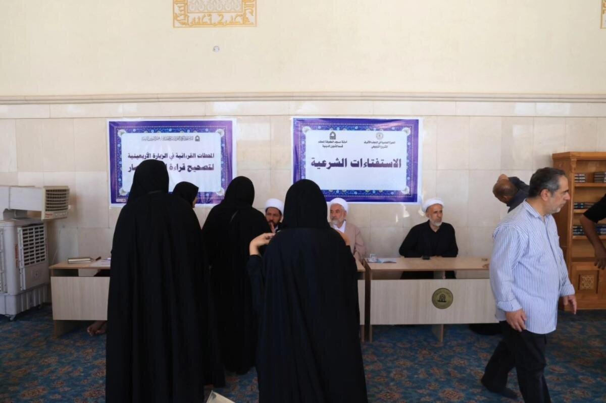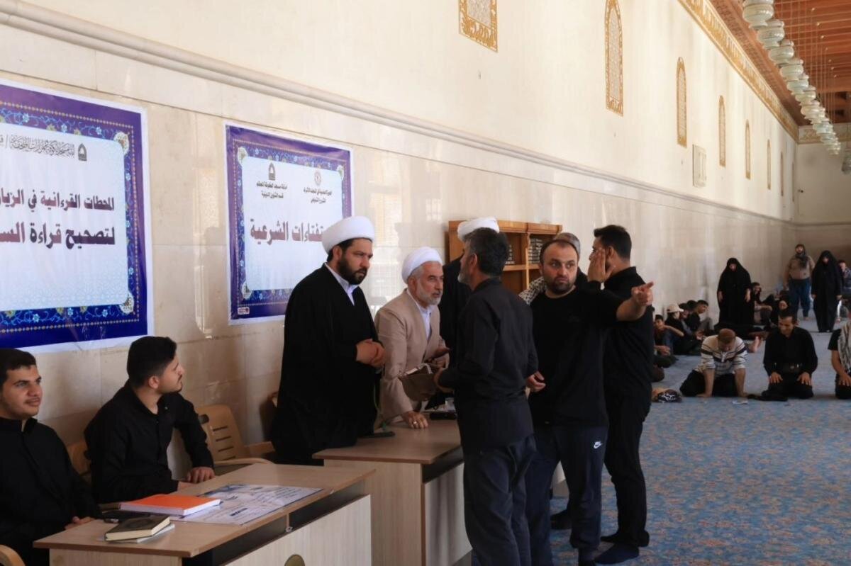 High turnout at the stations for correcting the recitation of short surahs spread throughout the Kufa Mosque during the Arbaeen pilgrimage