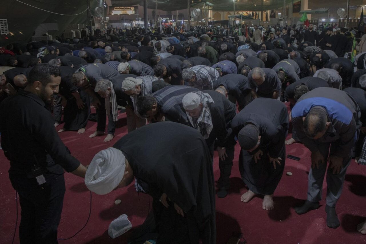 The path of the pilgrims arriving in the holy city of Karbala witnessed the congregation prayer at the Aba al-Fadl al-Abbas (peace be upon him) complex, with the participation of the Arbaeen pilgrims.