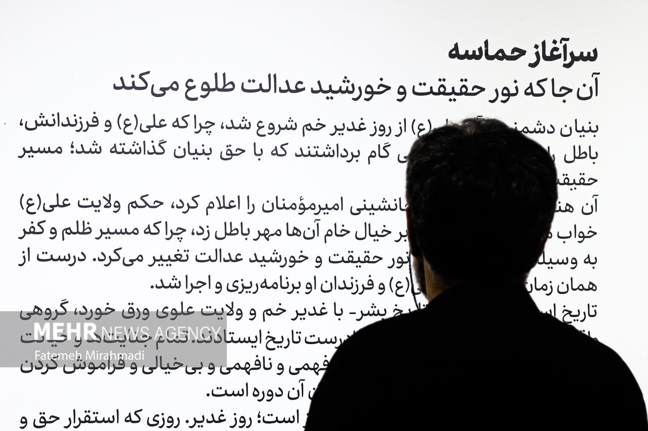 Home News Service Pictures Photos: Ashura Exhibition “As Tall as History” in Tehran 11 August 2025 - 11:13 News ID: 1716072 Source: Mehr News related Tehran launches study on women’s role in Arbaeen pilgrimage Photos: Farewell Ceremony for Arbaeen Pilgrims at Tehran Railway Station Iraq's Diyala governor closes province for three days to serve Arbaeen pilgrims Photos: Passport Issuance Process in Iran During Arbaeen Days Photos: Youth Conference on Global Responsibility in Upholding Covenant with Ashura Photos: Farewell ceremony for Imam Hussain’s pilgrims at Azadi Square of Tehran Pres. Pezeshkian offers condolences on passing of renowned Iranian painter Farshchian Farewell to the Painter of Love: In Praise of the Exalted Master Mahmoud Farshchian Astan Quds Razavi servants serve Arbaeen pilgrims in Najaf under Imam Reza’s banner