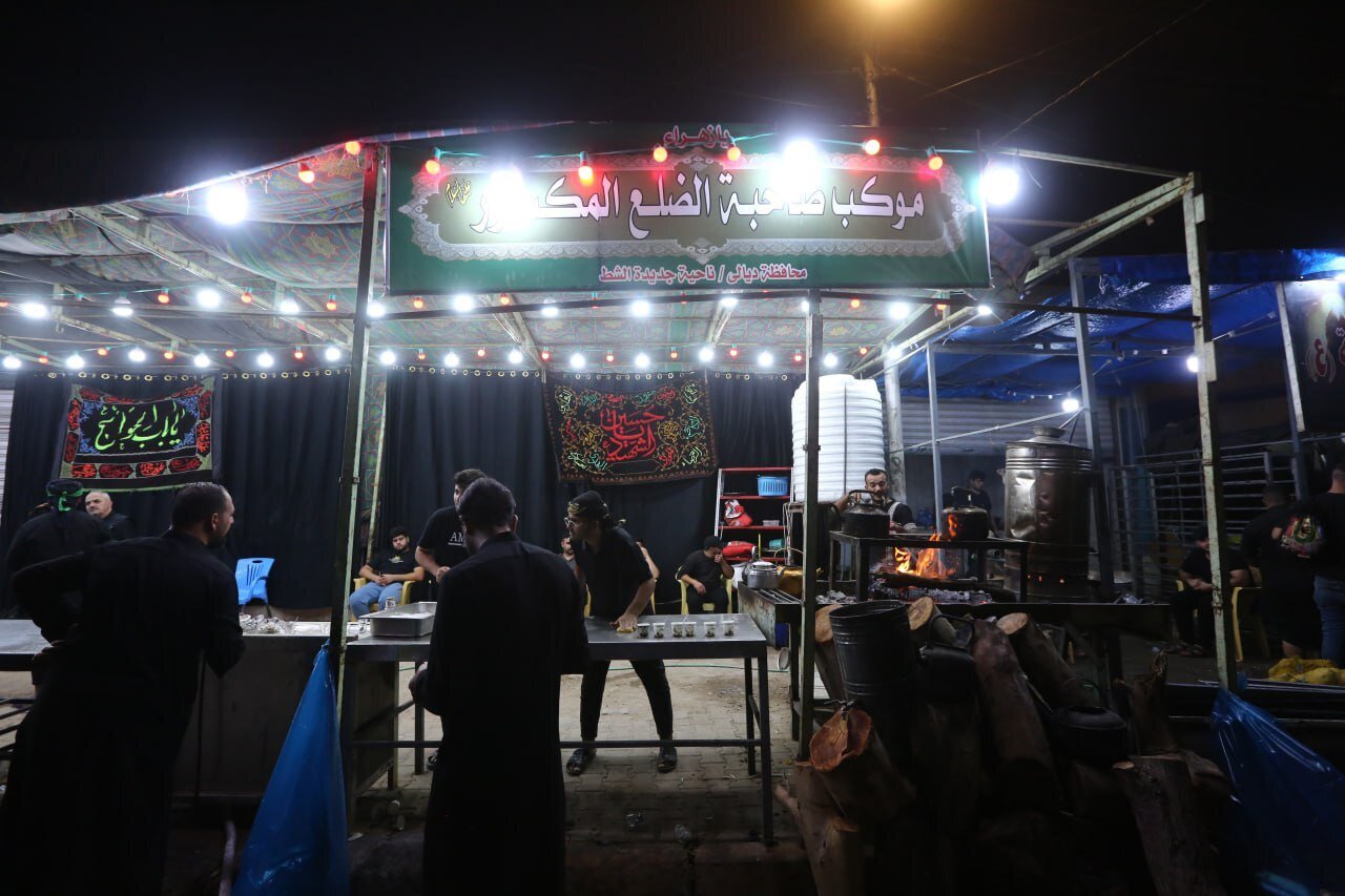 Photos: Mawkib of "Sahib Zil Maksur" ("The Lady with the Broken Rib") in Diyala serves Arbaeen pilgrims and helps poor in Karbala
