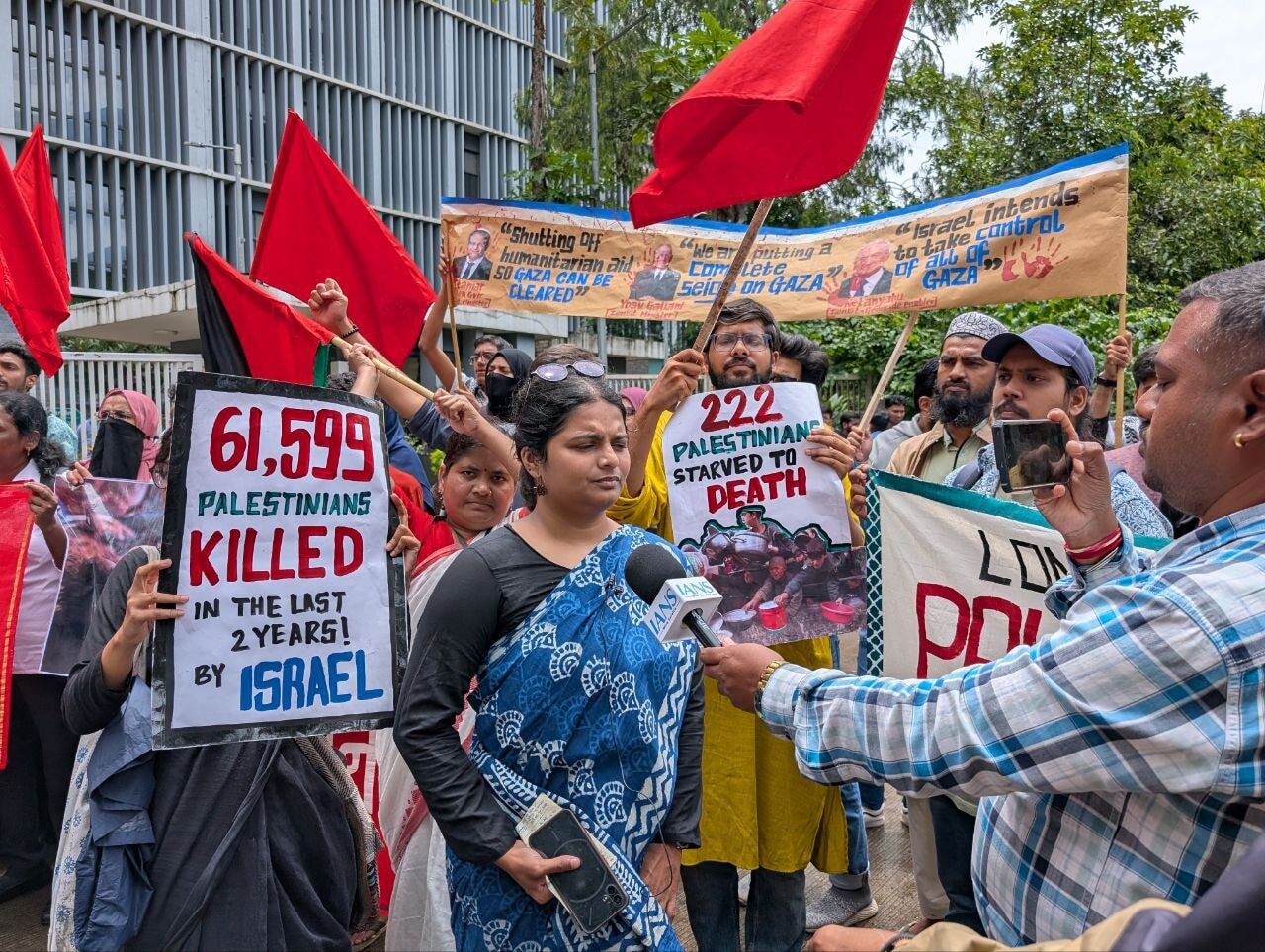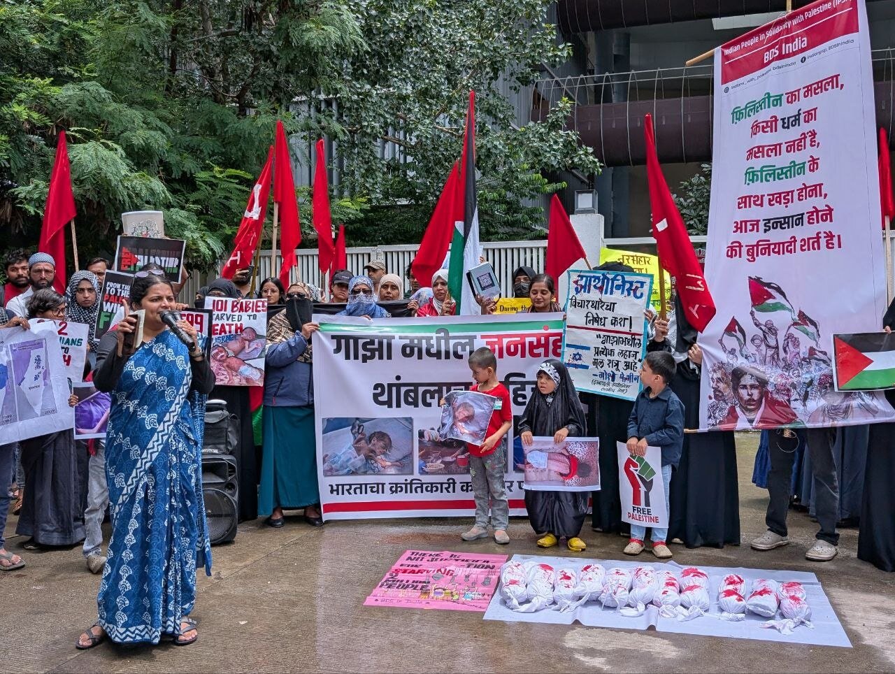 AhlulBayt News Agency: A protest was organized at Collector office, Pune on Sat, 23 Aug to demand the end to genocide in Gaza. BDS India, Indian People in Solidarity with Palestine(IPSP) supporters joined the protest called by RWPI in which many left, progressive organizations, justice loving citizens, students, youth, women, participated.