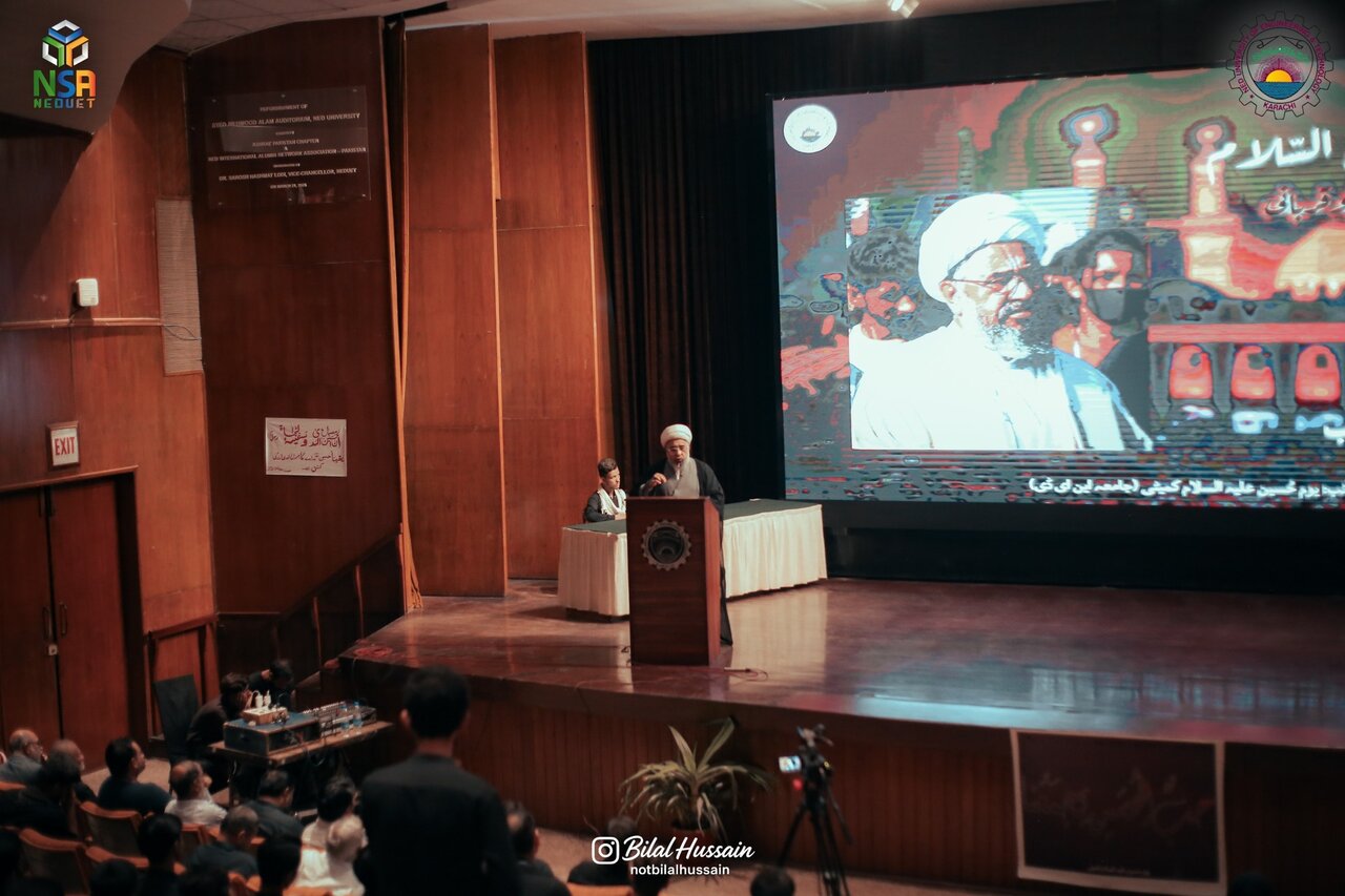 AhlulBayt News Agency: NED University of Engineering and Technology in Karachi held its annual Youm-e-Hussain (Day of Hussain) bringing together Sunni and Shia scholars, students, and faculty in a powerful display of unity.