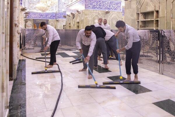 Home News Service Pictures Photos: Washing Rituals of Holy Shrine and Courtyard of Abu al-Fadl al-Abbas 6 September 2025 - 09:43 News ID: 1723980 Source: Abna24 related Service Affairs Department launches a cleaning campaign at external sites of Al-Abbas Shrine Karbala people carrying symbolic coffin of Imam al-Askari at two holy shrines (+Photos) Photos: Large numbers of visitors flock to commemorate Friday night at Al-Abbs shrine In collaboration with Al-Abbas Shrine.. University Students' Association celebrates birthday of Prophet Muhammad At two holy shrines.. Karbala mourning processions commemorate martyrdom anniversary of Imam al-Askari Washing and cleaning minarets of Aba al-Fadl al-Abbas holy shrine (+Photos) Al-Abbas Holy Shrine installed green banners on occasion of Prophet's birthday (+Photos) Servants of two holy shrines commemorate martyrdom of Imam al-Askari through a unified mourning procession Al-Abbas Holy Shrine counts services provides to pilgrims of two Imams in Samarra (+Photos) Al-Abbas Holy Shrine prepares holy courtyard in anticipation of first international Rahma for Worlds festival Photos: Al-Abbas Holy Shrine completes its preparations to commemorate martyrdom of Imam Hasan al-Askari in Samarra 8th Rabiul Awal: Martyrdom Anniversary of Imam Hassan Al-Askari / Biography