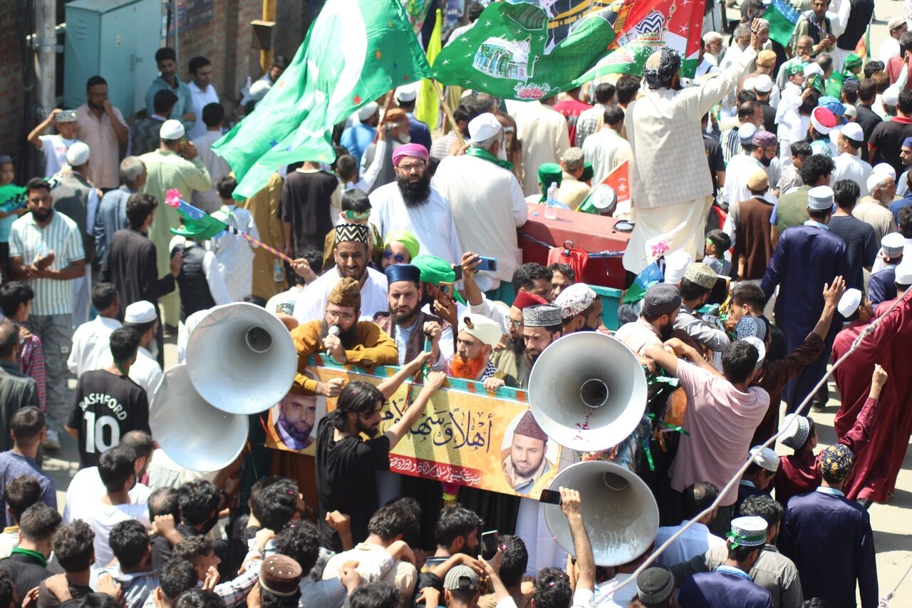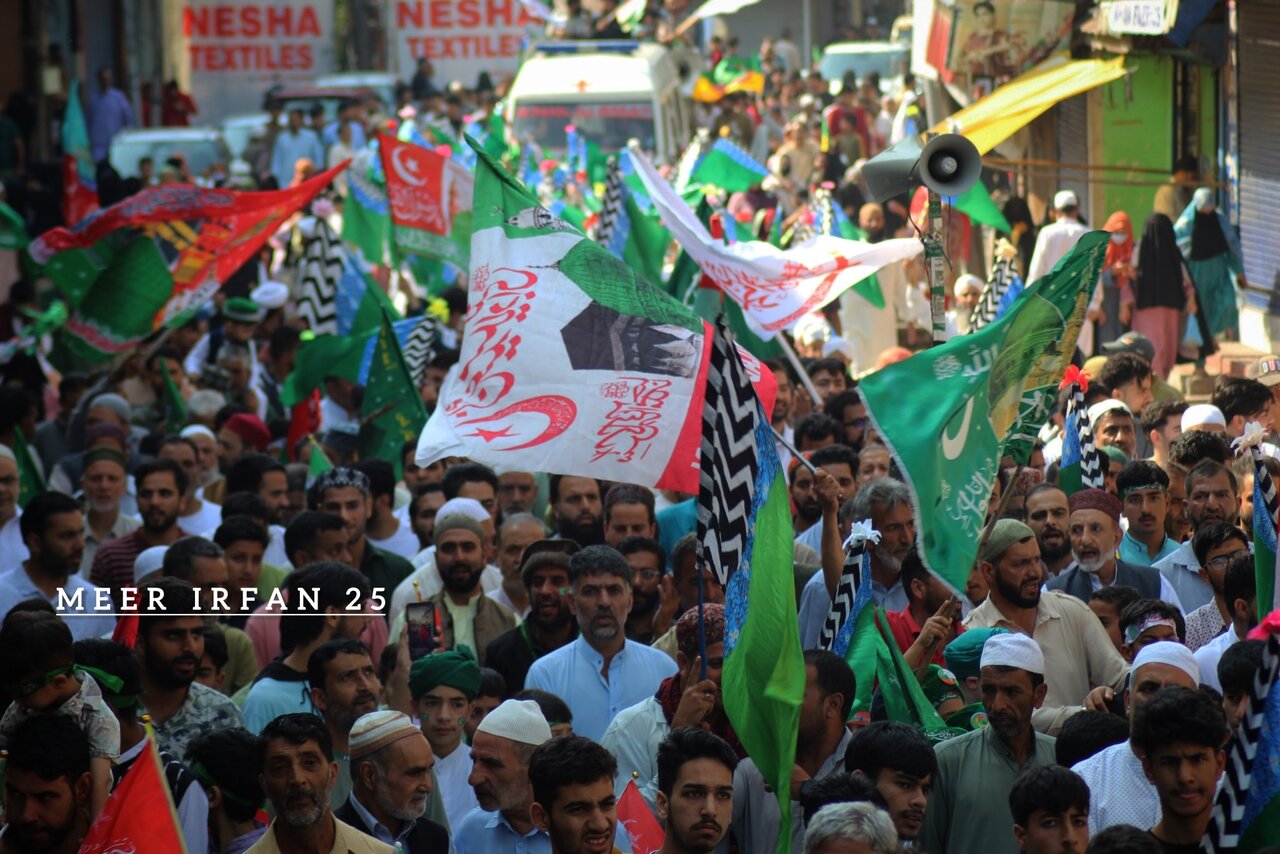 AhlulBayt News Agency: A grand Milad-al Nabi (PBUH) procession was taken out in Anantnag town, Kashmir, where thousands of devotees participated. The faithful recited naats and sent blessings upon the Holy Prophet (PBUH), reaffirming their devotion to his noble teachings.