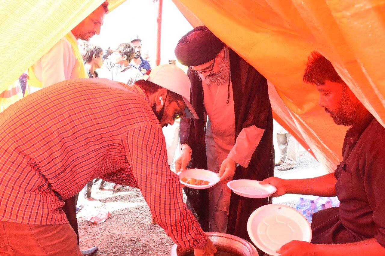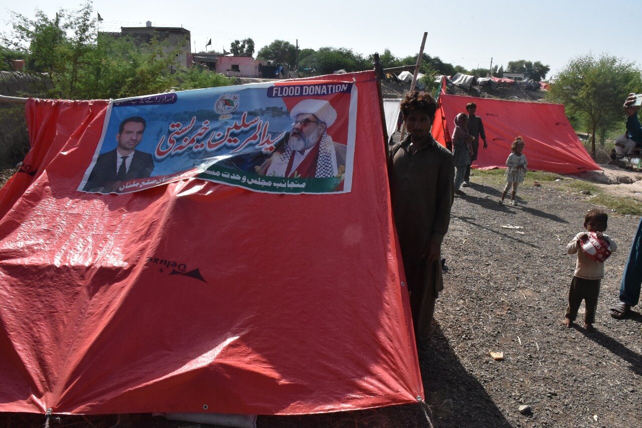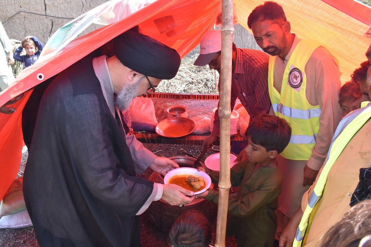 AhlulBayt News Agency: Allama Syed Ahmed Iqbal Rizvi, Vice Chairman of Majlis-e-Wahdat-ul-Muslimeen (MWM) Pakistan, visited the Syed al-Mursaleen tent settlement in Sher Shah, Multan (Southern Punjab). During his visit, he listened to the grievances of flood-affected families and personally took part in distributing food among them.