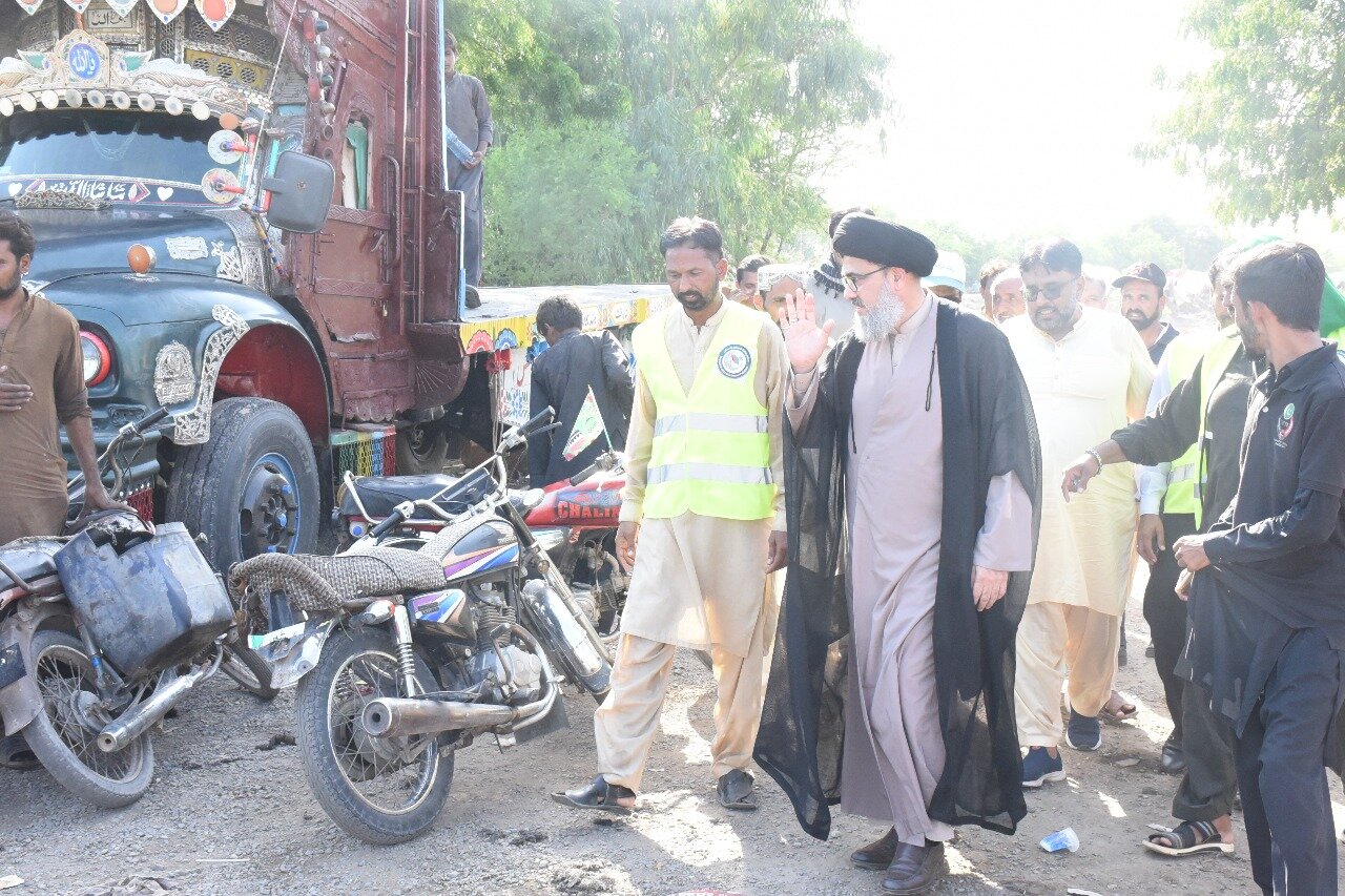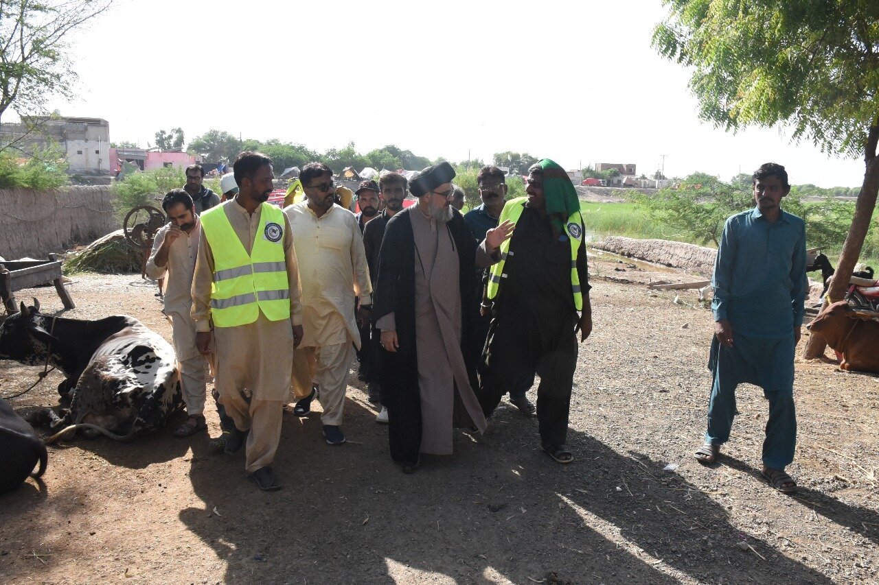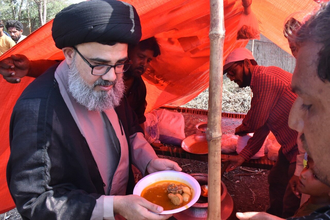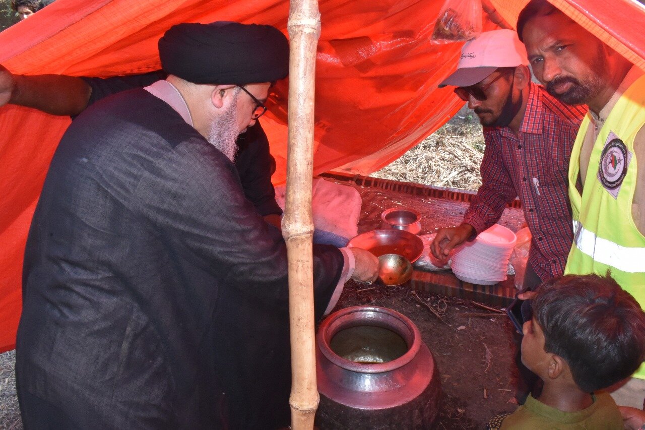AhlulBayt News Agency: Allama Syed Ahmed Iqbal Rizvi, Vice Chairman of Majlis-e-Wahdat-ul-Muslimeen (MWM) Pakistan, visited the Syed al-Mursaleen tent settlement in Sher Shah, Multan (Southern Punjab). During his visit, he listened to the grievances of flood-affected families and personally took part in distributing food among them.