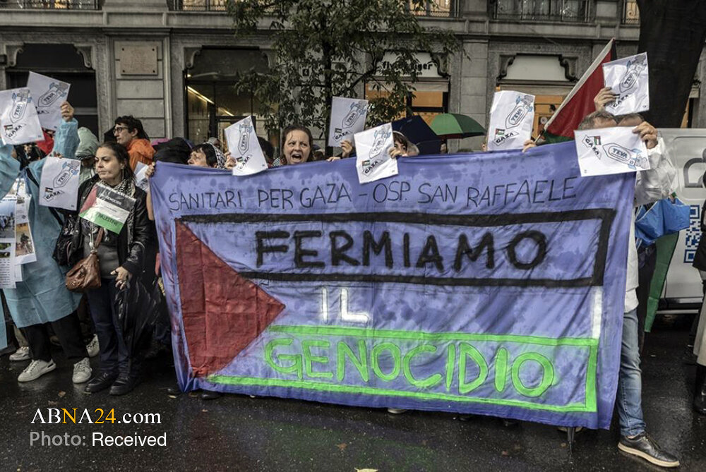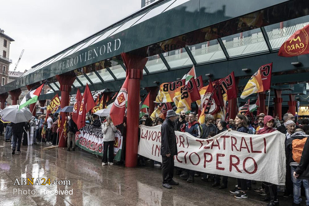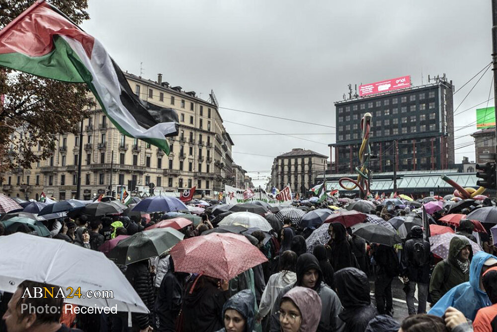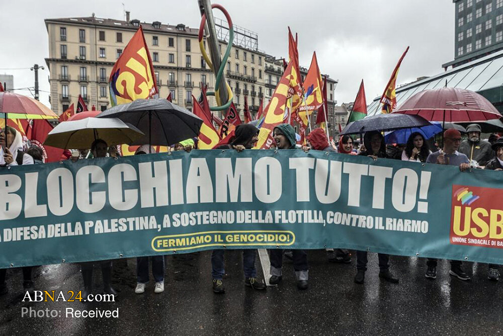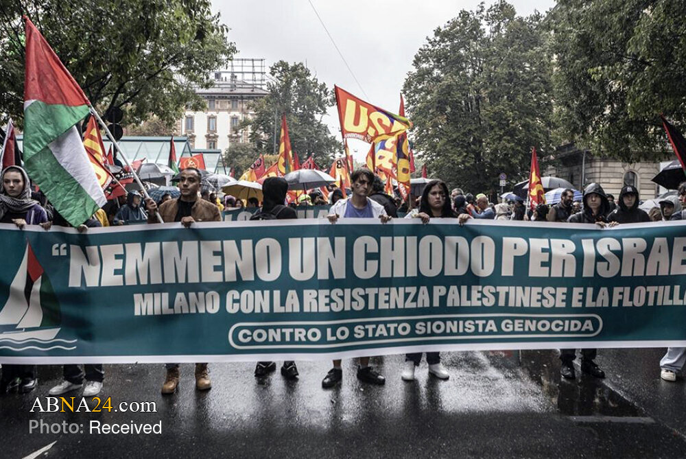 Home News Service Pictures Photos: Pro-Gaza demonstration held in Milan, Italy 23 September 2025 - 11:44 News ID: 1730201 Source: Abna24 related Italian Dockworkers strike across ports in solidarity with Palestinians Flights delayed across Italy as airport workers strike for Gaza Over 1,000 Christian priests condemn Israeli crimes in Gaza UEFA to vote on Israel suspension over Gaza war Milan protesters demand release of Palestinian prisoners Italy bars Israel from Rimini tourism fair over Gaza war boycott calls Israeli company Teva faces global boycott over Gaza war complicity Global musicians demand removal of tracks from Israeli platforms Photos: Protests in support of oppressed people of Gaza held across Italy Lebanon’s Grand Mufti: "Israel is existential threat, resistance is our strength"